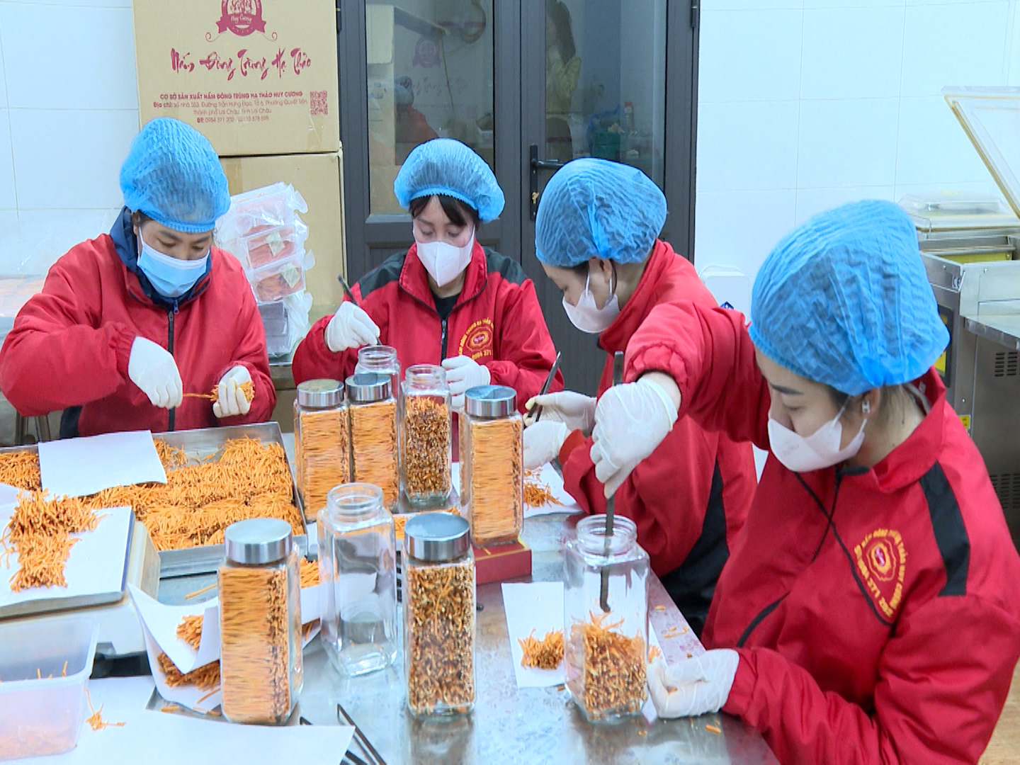 Cơ sở Nấm Đông trùng hạ thảo Huy Cương đóng gói sản phẩm OCOP