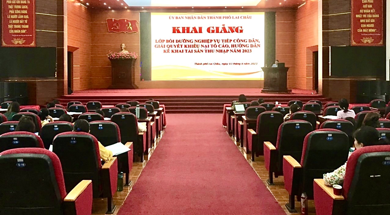 Trong 2 ngày 03 - 04/8, UBND thành phố Lai Châu tổ chức Lớp Bồi dưỡng nghiệp vụ tiếp công dân, giải quyết khiếu nại, tố cáo, kê khai tài sản thu nhập năm 2023.