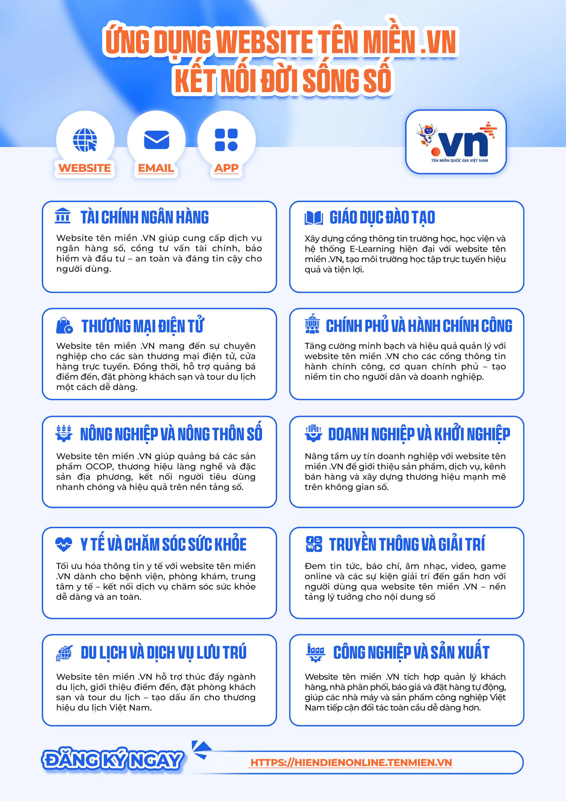 Ngày 21/5/2024, Bộ Thông tin và Truyền thông (Bộ TT&TT) đã ban hành Quyết định số 826/QĐ-BTTTT phê duyệt "Chương trình thúc đẩy, hỗ trợ người dân, doanh nghiệp, hộ kinh doanh hiện diện trực tuyến tin cậy, an toàn với các dịch vụ số sử dụng tên miền quốc gia ".vn" ở các tỉnh, thành phố trên cả nước giai đoạn 2024 - 2025" với mục tiêu phổ cập tên miền quốc gia ".vn", góp phần thúc đẩy mạnh mẽ tiến trình chuyển đổi số, phát triển chính phủ số, kinh tế số và xã hội số của đất nước, hiện thực hóa mục tiêu đến năm 2025 tối thiểu đạt 1 triệu tên miền ".vn".