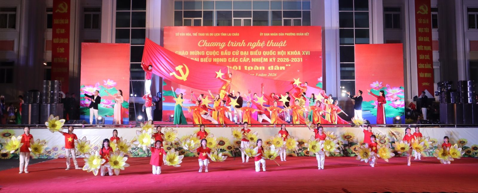 Tối 13/3, UBND phường Đoàn Kết phối hợp Sở Văn hóa, Thể thao và Du lịch tổ chức Chương trình Nghệ thuật chào mừng cuộc bầu cử đại biểu Quốc hội và đại biểu HĐND các cấp, nhiệm kỳ 2026 - 2031.