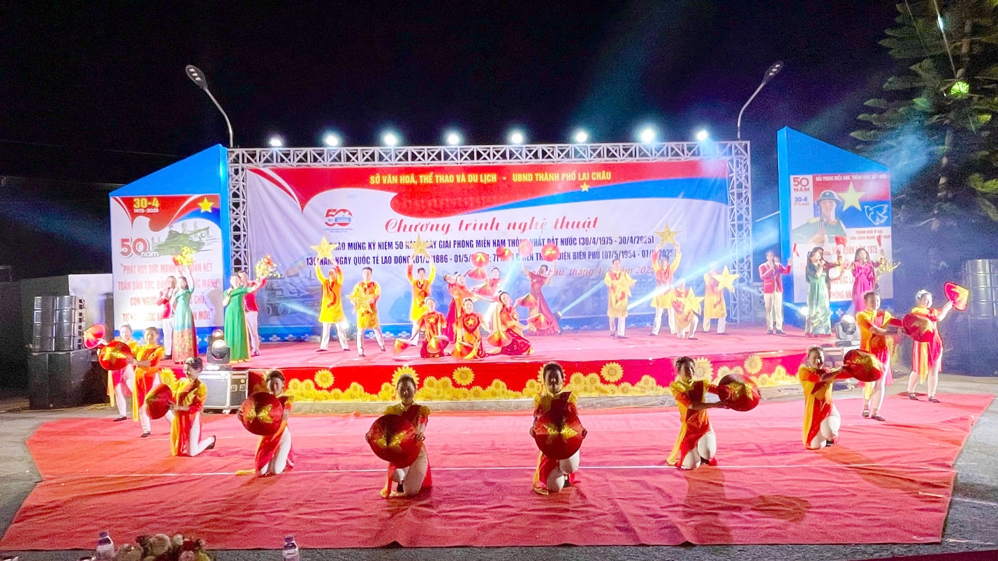 Hoà chung không khí hân hoan của cả nước, tối ngày (26/4), Sở Văn hoá, Thể thao và Du lịch phối hợp với UBND thành phố Lai Châu tổ chức Chương trình nghệ thuật chào mừng kỷ niệm 50 năm Ngày giải phóng miền Nam, thống nhất đất nước (30/4/1975 - 30/4/2025), 139 năm ngày Quốc tế Lao động (1/5/1886 - 1/5/2025), 71 năm chiến thắng Điện Biên Phủ (7/5/1954 - 7/5/2025).