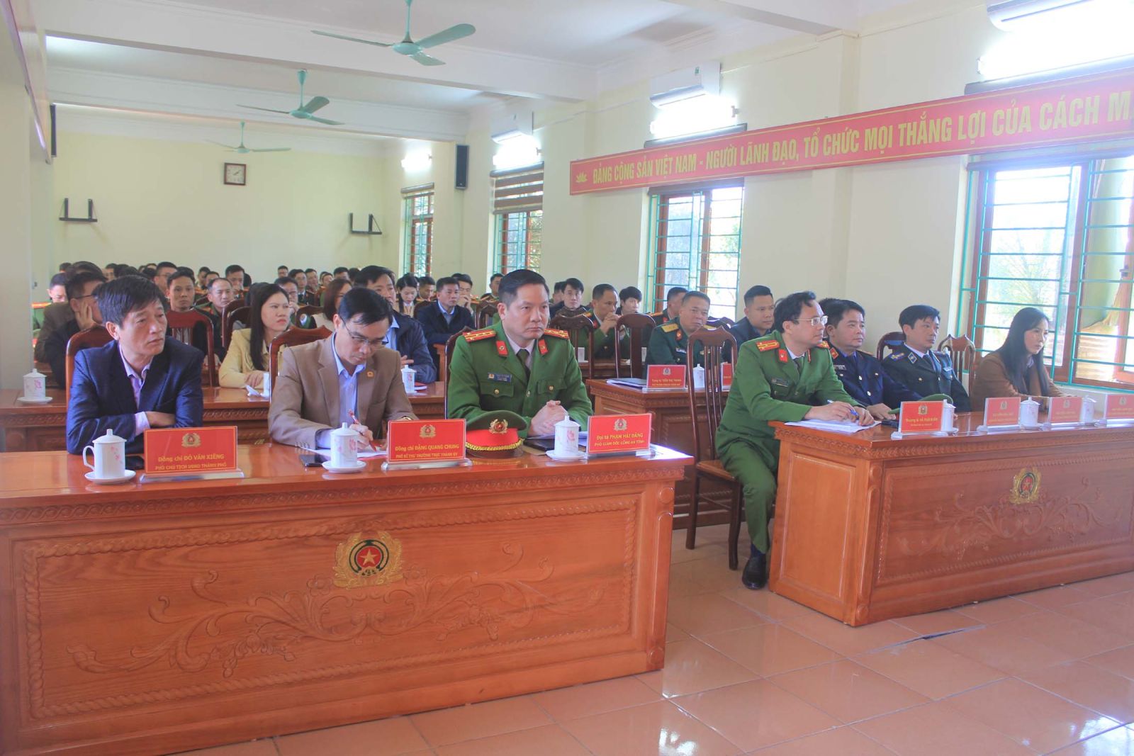 Phát biểu tại buổi lễ, Đại tá Phạm Hải Đăng, Phó Giám đốc Công an tỉnh nhấn mạnh: Việc sắp xếp, tinh gọn tổ chức bộ máy, không tổ chức Công an cấp huyện là chủ trương lớn, đúng đắn của Bộ Chính trị, Đảng ủy Công an Trung ương nhưng đây là công việc rất phức tạp, hệ trọng, nhiều nội dung nhiệm vụ rất mới, chưa có tiền lệ, đồng thời phải tiến hành theo tinh thần "vừa chạy, vừa xếp hàng". Ban Thường vụ Đảng ủy Công an tỉnh đã chỉ đạo xây dựng kế hoạch, tổ chức nhận xét, đánh giá đối với từng cán bộ lãnh đạo, chỉ huy và cán bộ, chiến sĩ một cách đầy đủ, toàn diện, chặt chẽ, dân chủ, khách quan, công khai, minh bạch; kết hợp với việc đánh giá đặc điểm, tình hình, tính chất địa bàn từng đơn vị hành chính cấp xã để làm cơ sở xây dựng phương án sắp xếp bố trí đội ngũ cán bộ đảm bảo sát với thực tế, năng lực, sở trường và trình độ đào tạo. Sau khi thực hiện chủ trương tinh gọn tổ chức bộ máy, kịp thời hướng dẫn, giúp đỡ lực lượng Công an xã trong thực hiện chức trách nhiệm vụ tại địa bàn cấp huyện, thành phố đảm bảo liền mạch, thông suốt, không bị gián đoạn.