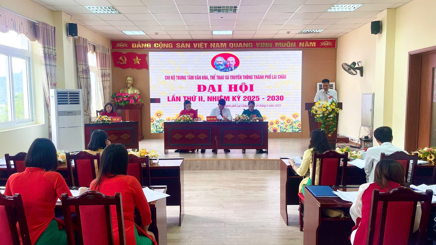 Đại hội chi bộ Trung tâm Văn hóa, Thể thao và Truyền thông thành phố Lai Châu lần thứ II, nhiệm kỳ 2025-2030, đã tiến hành bầu Chi ủy nhiệm kì mới gồm 05 đồng chí; bầu Bí thư, Phó Bí thư. Đồng chí Nguyễn Văn Tuệ tái cử chức danh Bí thư chi bộ nhiệm kì mới, đồng chí Phạm Thị Lý được bầu làm Phó Bí thư chi bộ.