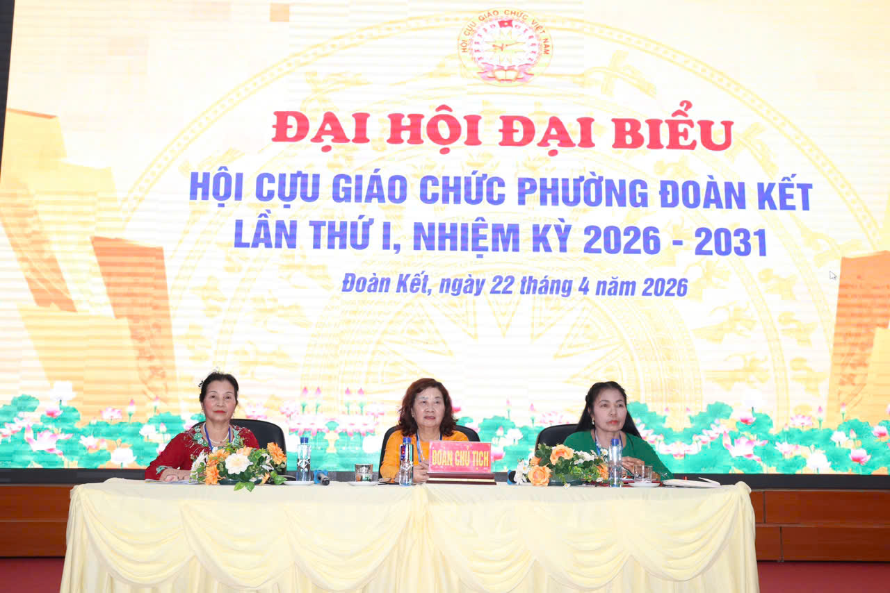 Chiều ngày 22/4/2026, Hội Cựu giáo chức phường Đoàn Kết tổ chức Đại hội đại biểu lần thứ I, nhiệm kỳ 2026–2031. Đây là sự kiện có ý nghĩa quan trọng, đánh dấu việc hợp nhất tổ chức Hội từ ba đơn vị Đoàn Kết, Quyết Thắng và Quyết Tiến. Dự Đại hội có đồng chí Nguyễn Lệ Thủy –UVBTVĐU, Phó Chủ tịch UBND phường; đại diện Hội Cựu giáo chức cấp trên và các hội viên tiêu biểu trên địa bàn.