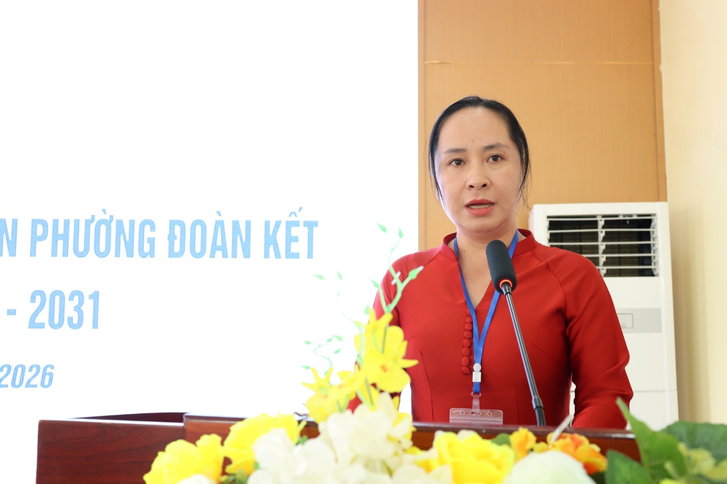Phát biểu tại Đại hội, lãnh đạo UBND phường Đoàn Kết đã ghi nhận, biểu dương những kết quả mà Hội đạt được trong nhiệm kỳ qua. Đồng thời đề nghị, trong nhiệm kỳ 2026 – 2031, Hội tiếp tục phát huy tinh thần đoàn kết, chủ động đổi mới nội dung, phương thức hoạt động; làm tốt hơn nữa công tác chăm lo đời sống hội viên; tăng cường vận động nguồn lực xã hội để hỗ trợ nạn nhân chất độc da cam; thực hiện hiệu quả các hoạt động nhân đạo, từ thiện; bảo vệ quyền và lợi ích hợp pháp, chính đáng của hội viên trên địa bàn.