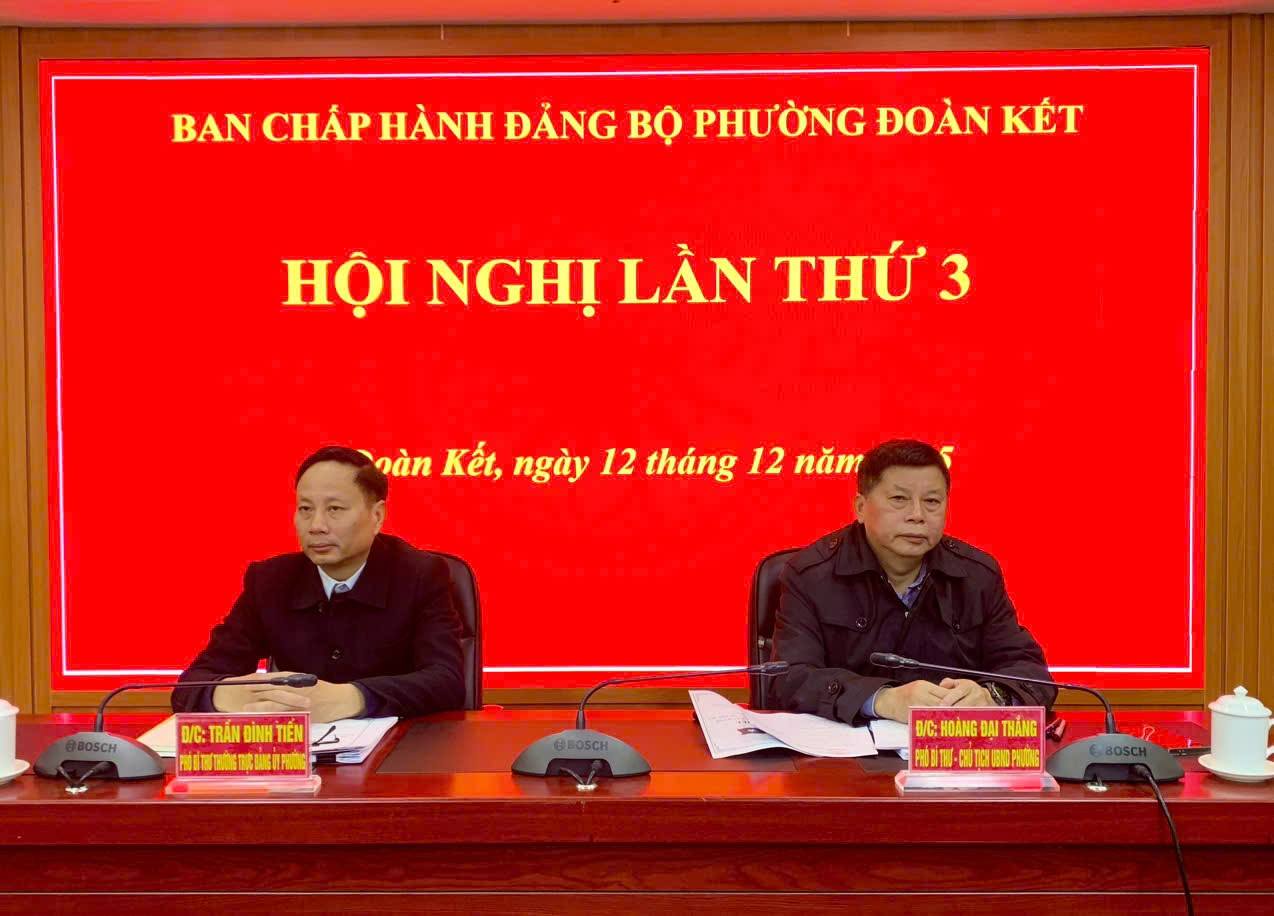 Đ/c: Trần Đình Tiến – Phó Bí thư Thường trực Đảng ủy, phụ trách Đảng bộ phường Đoàn Kết; Hoàng Đại Thắng – Phó Bí thư – Chủ tịch UBND phường chủ trì hội nghị.
