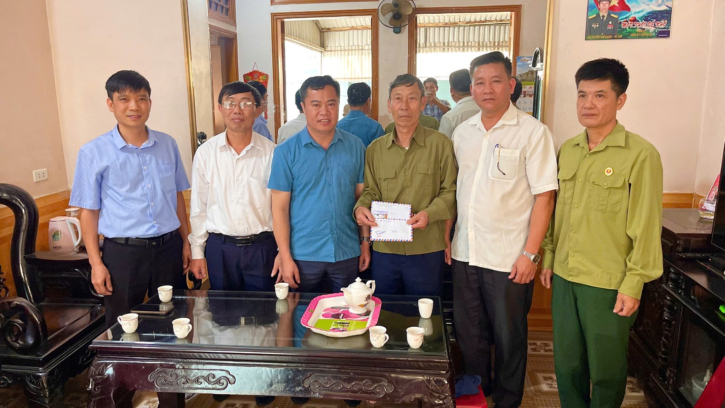 Đồng chí Tống Thanh Hải - Ủy viên BTV Tỉnh ủy, Phó Chủ tịch Thường trực UBND tỉnh và Đoàn công tác tặng quà gia đình ông Nguyễn Văn Cấn.