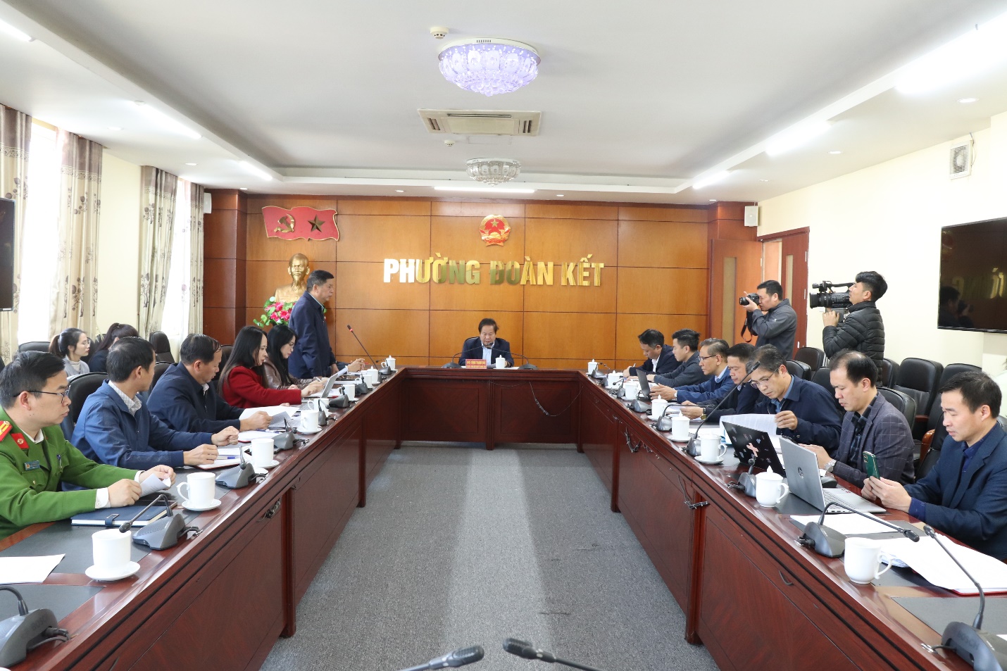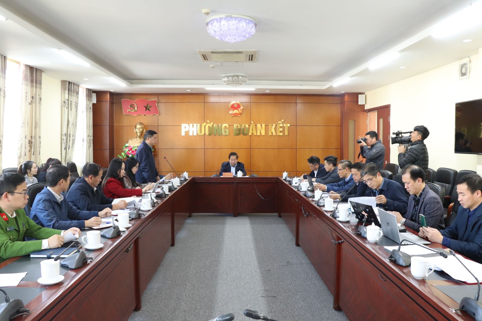 Lãnh đạo phường Đoàn Kết báo cáo công tác triển khai.