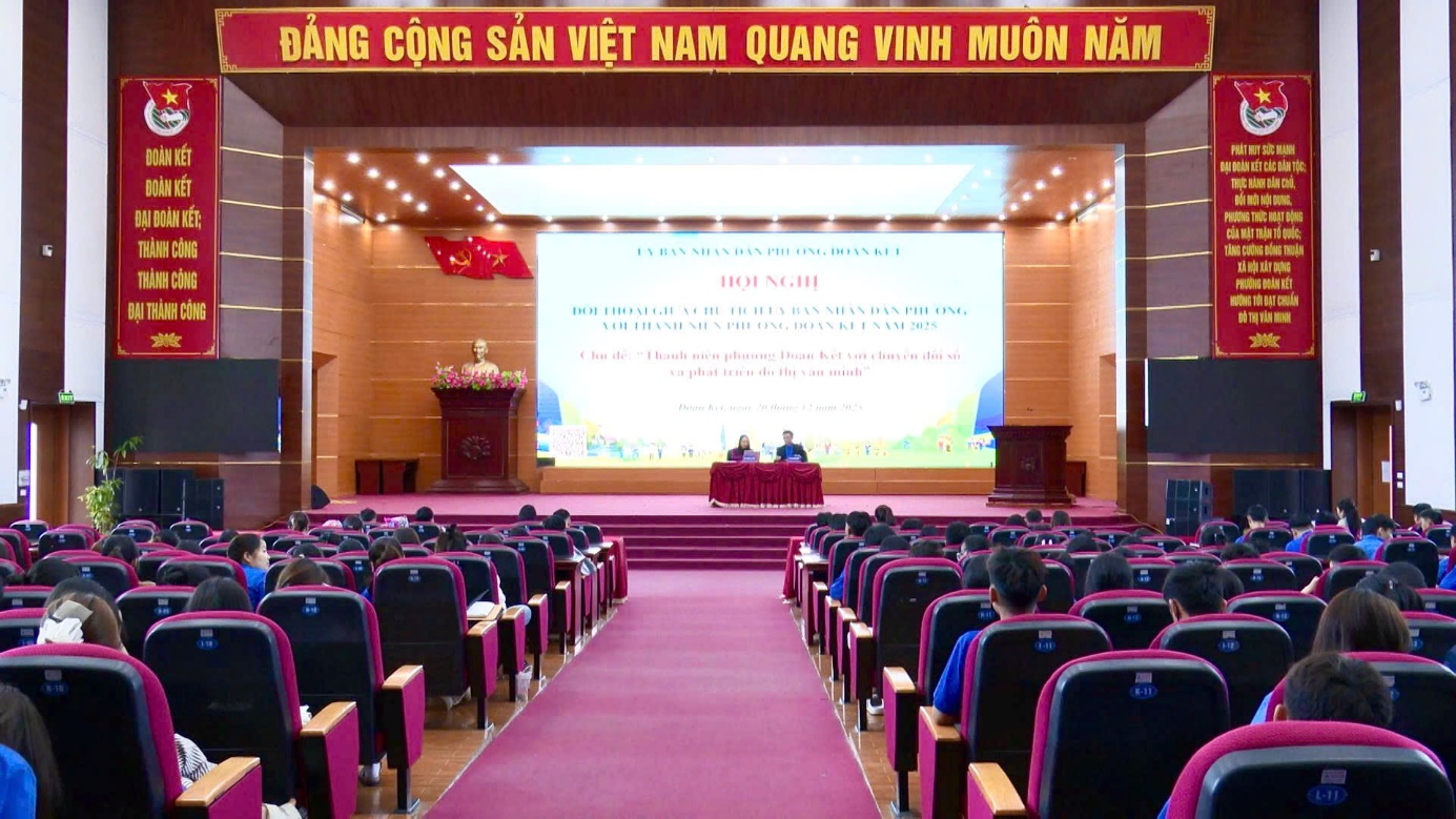 Chiều ngày 20/12, tại Trung tâm hội nghị văn hoá phường, đồng chí Nguyễn Lệ Thuỷ - Uỷ viên BTV Đảng ủy, Phó Chủ tịch UBND phường đã chủ trì hội nghị đối thoại giữa UBND phường với thanh niên phường Đoàn Kết về chủ đề: “ Thanh niên phường Đoàn Kết với chuyển đổi số và phát triển văn minh đô thị”. Dự hội nghị còn có các đồng chí lãnh đạo Ban xây dựng đảng, Phòng văn hoá – xã hội, một số nhà trường trên địa bàn; Đoàn thanh niên phường và hơn 200 đoàn viên.