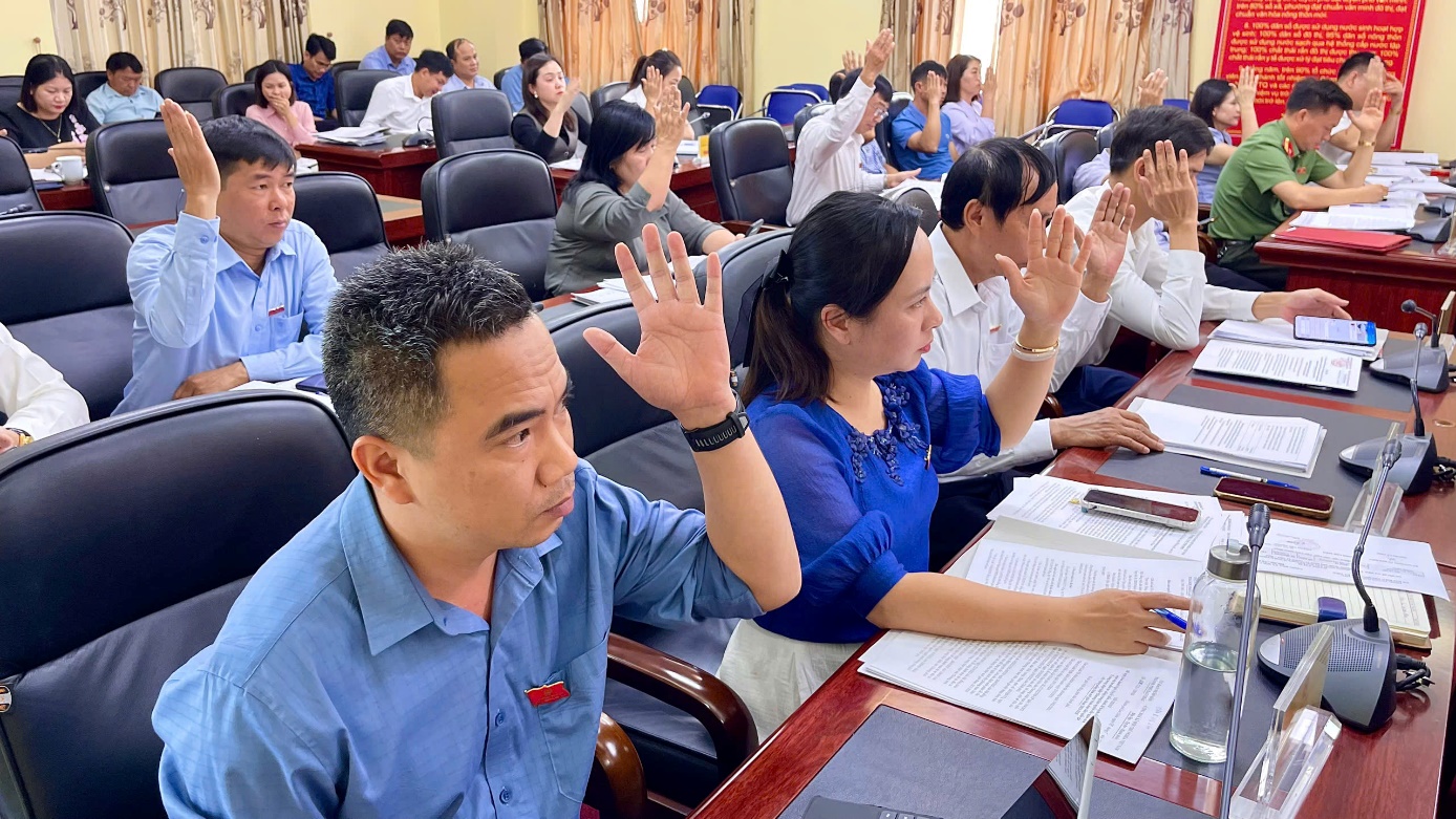 Đại biểu biểu quyết thông qua các Nghị quyết tại kì họp.