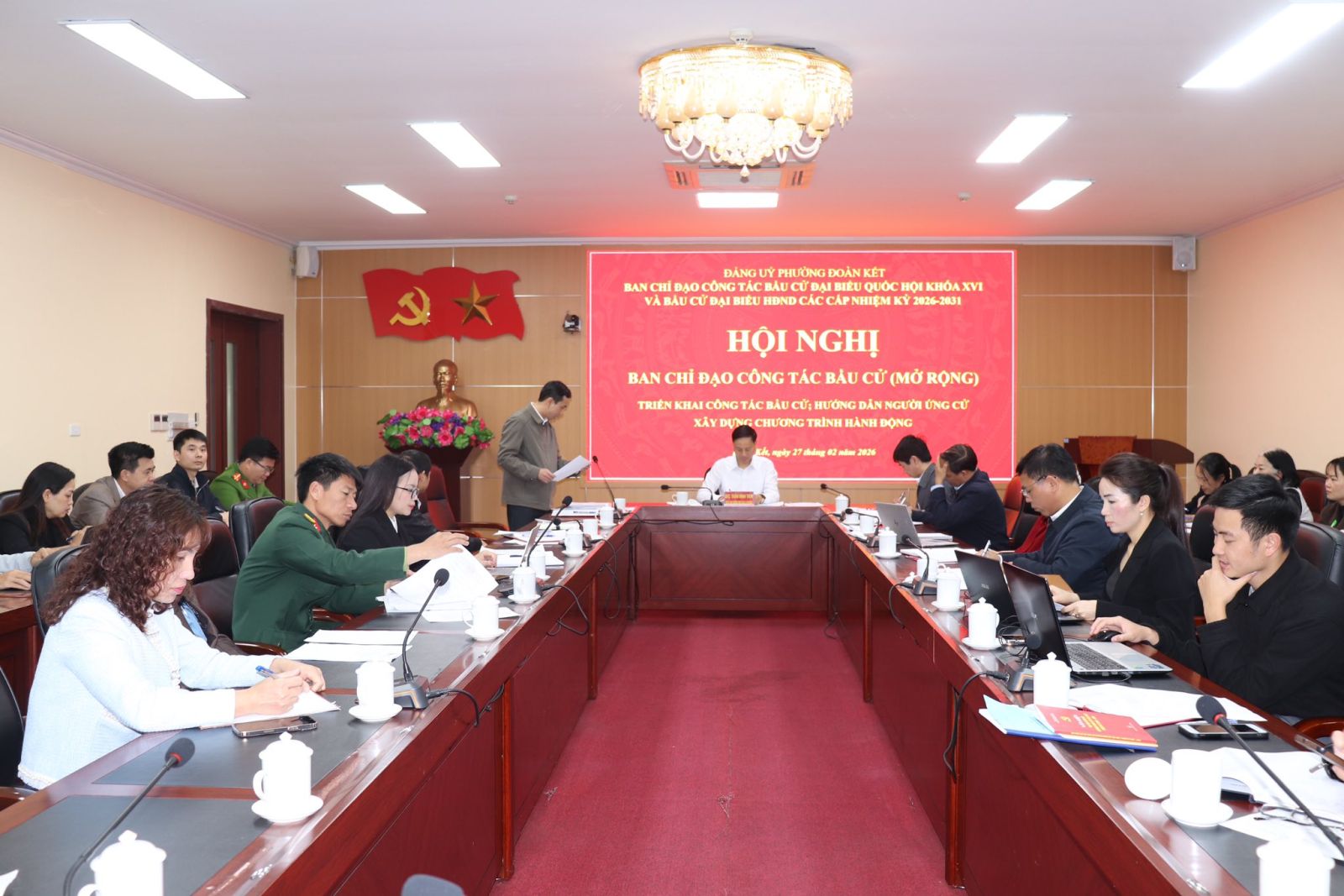 Sáng ngày 27/02/2026, Ban Chỉ đạo công tác bầu cử phường Đoàn Kết tổ chức Hội nghị Ban Chỉ đạo công tác bầu cử mở rộng nhằm đánh giá tiến độ triển khai các nhiệm vụ chuẩn bị bầu cử đại biểu Quốc hội khóa XVI và đại biểu Hội đồng nhân dân các cấp nhiệm kỳ 2026 – 2031.