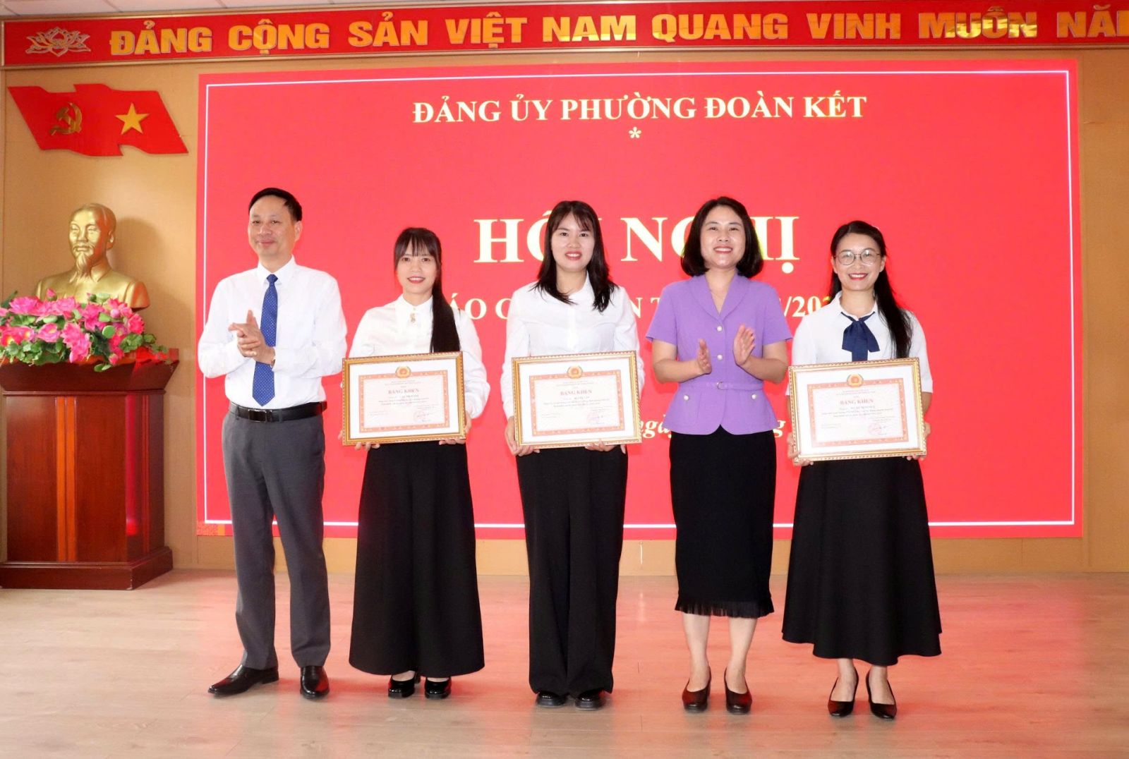 Dịp này, lãnh đạo Đảng uỷ phường Đoàn Kết trao tặng Bằng khen của Ban Thường vụ Tỉnh uỷ cho 3 đảng viên đạt tiêu chuẩn hoàn thành xuất sắc nhiệm vụ 5 năm liền (2021-2025).