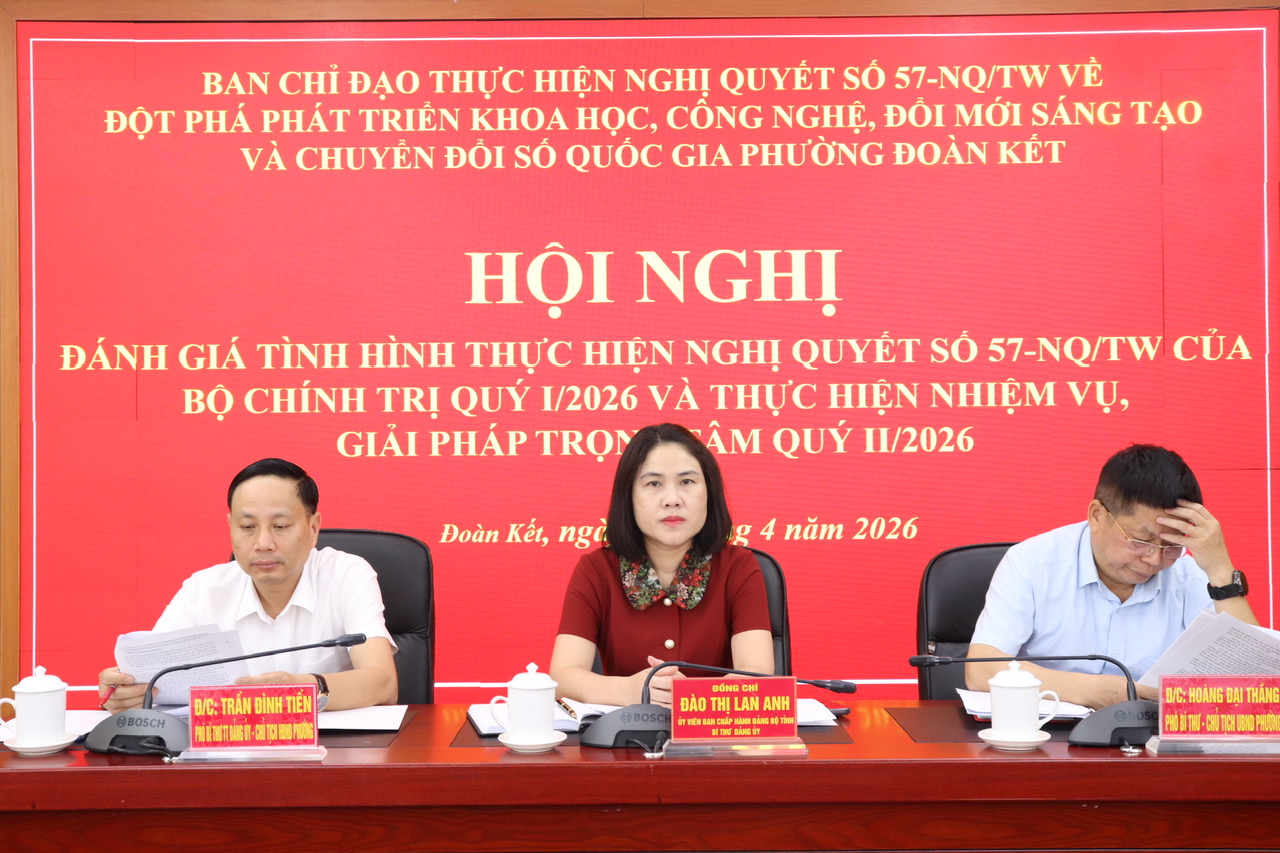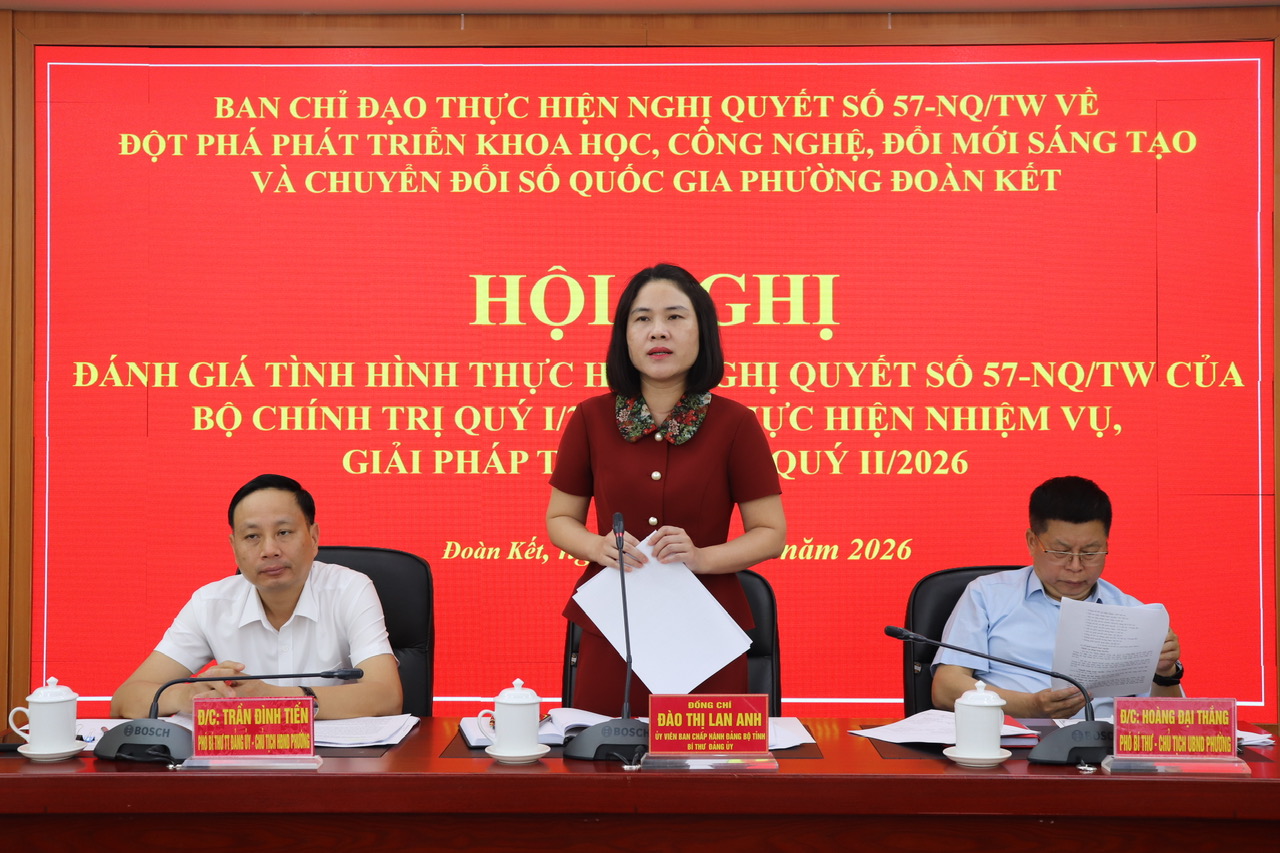 Chiều ngày 9/4, Ban Chỉ đạo thực hiện Nghị quyết số 57-NQ/TW phường Đoàn Kết tổ chức Hội nghị đánh giá tình hình thực hiện nhiệm vụ quý I năm 2026, triển khai phương hướng, nhiệm vụ quý II năm 2026.