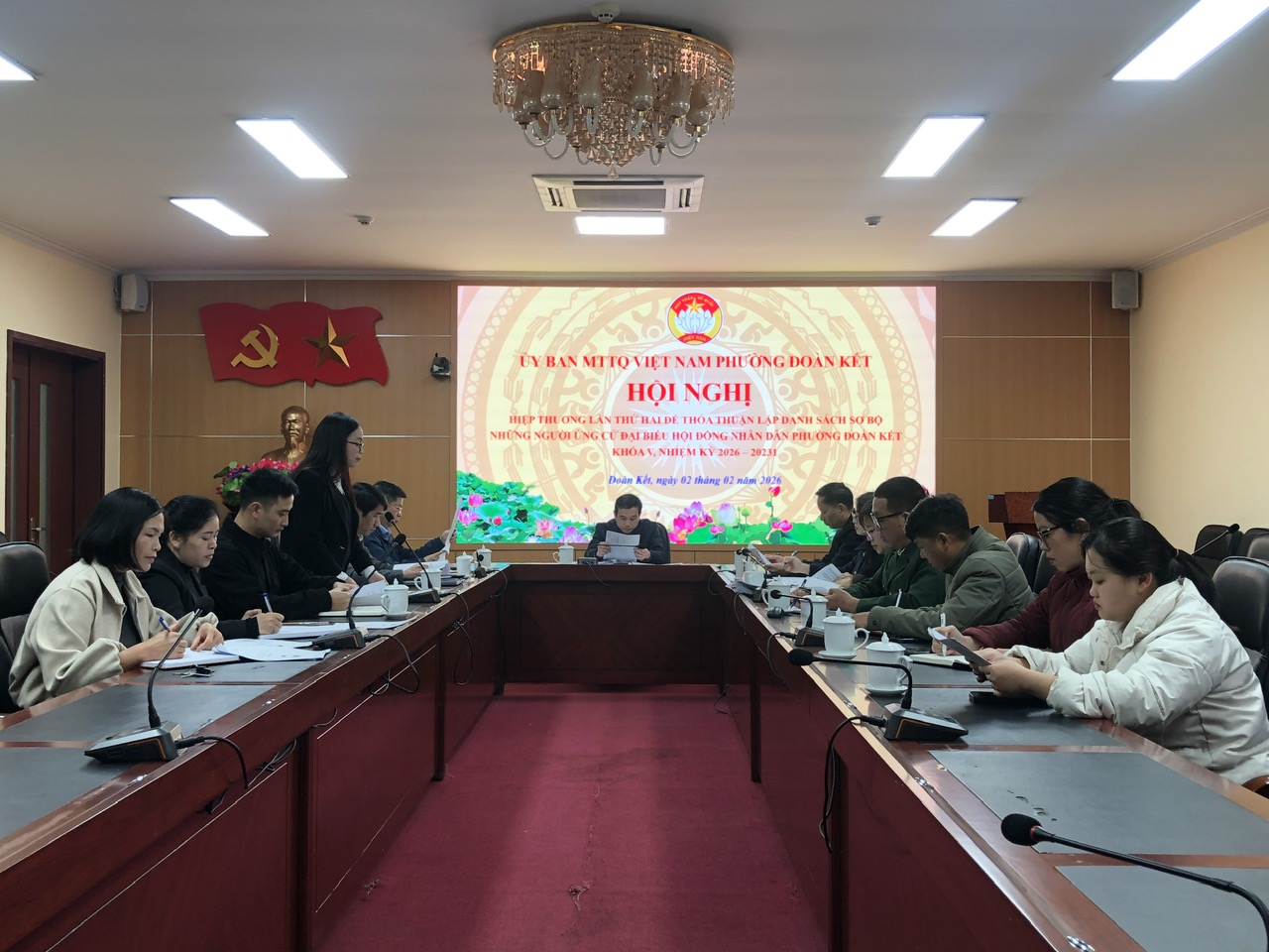 Chiều ngày 02 tháng 01, Ủy ban Mặt trận Tổ quốc Việt Nam phường Đoàn Kết đã tổ chức Hội nghị hiệp thương lần thứ hai, nhằm thỏa thuận lập danh sách sơ bộ những người ứng cử đại biểu Hội đồng Nhân dân phường Đoàn Kết khóa V, nhiệm kỳ 2026 – 2031.