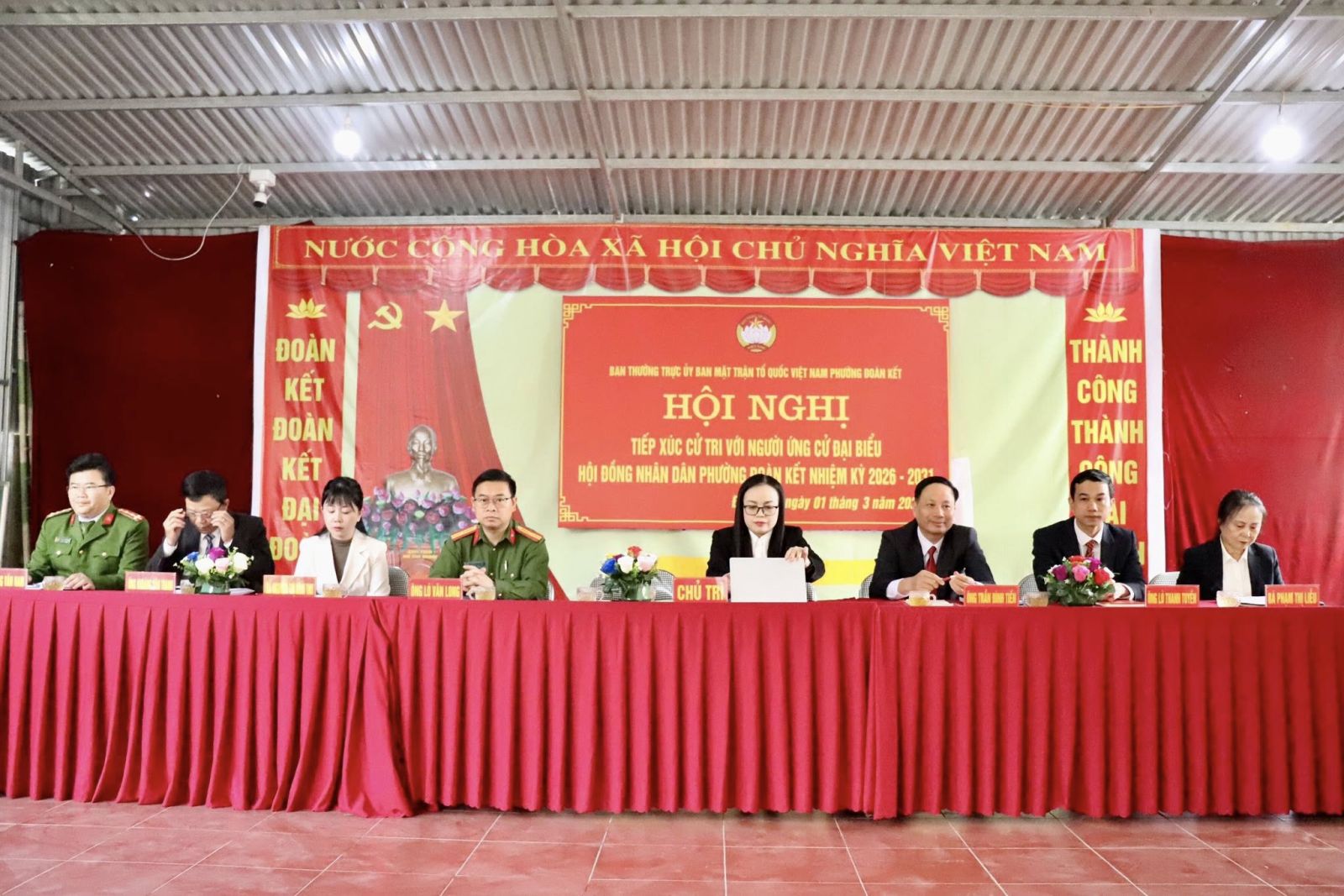 Sáng ngày 01/3/2026, Ban Thường trực Ủy ban MTTQ Việt Nam phường Đoàn Kết tổ chức Hội nghị tiếp xúc cử tri để các ứng cử viên đại biểu HĐND phường nhiệm kỳ 2026 – 2031 thực hiện vận động bầu cử tại Nhà văn hóa Tổ dân phố Quyết Tiến 3. Hội nghị có sự tham dự của cử tri các tổ dân phố Quyết Tiến 1, 2 và 3 (Đơn vị bầu cử số 3).