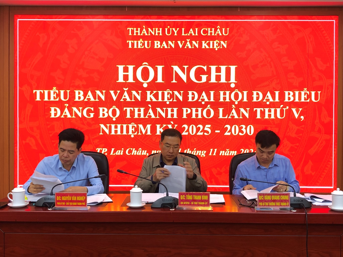 Sáng nay 21/11, Thành ủy Lai Châu tổ chức Hội nghị tiểu ban văn kiện Đại hội Đại biểu Đảng bộ thành phố Lai Châu lần thứ V, nhiệm kỳ 2025 – 2030. Các đồng chí: Tống Thanh Bình - Ủy viên BTV Tỉnh ủy, Bí thư Thành ủy, Đặng Quang Chung – Phó Bí thư Thương trực Thành ủy, Nguyễn Văn Nghiệp – Phó Bí thư, Chủ tịch UBND thành phố chủ trì hội nghị.