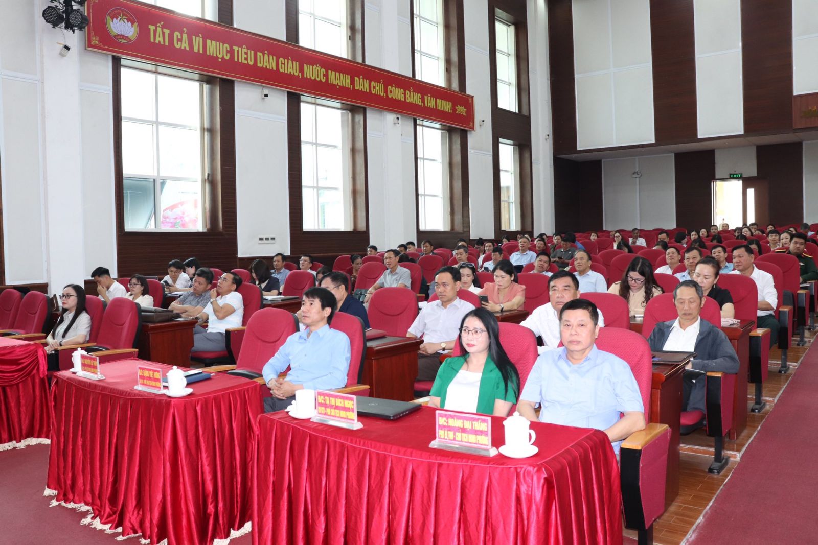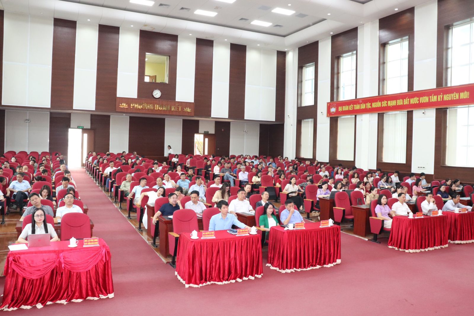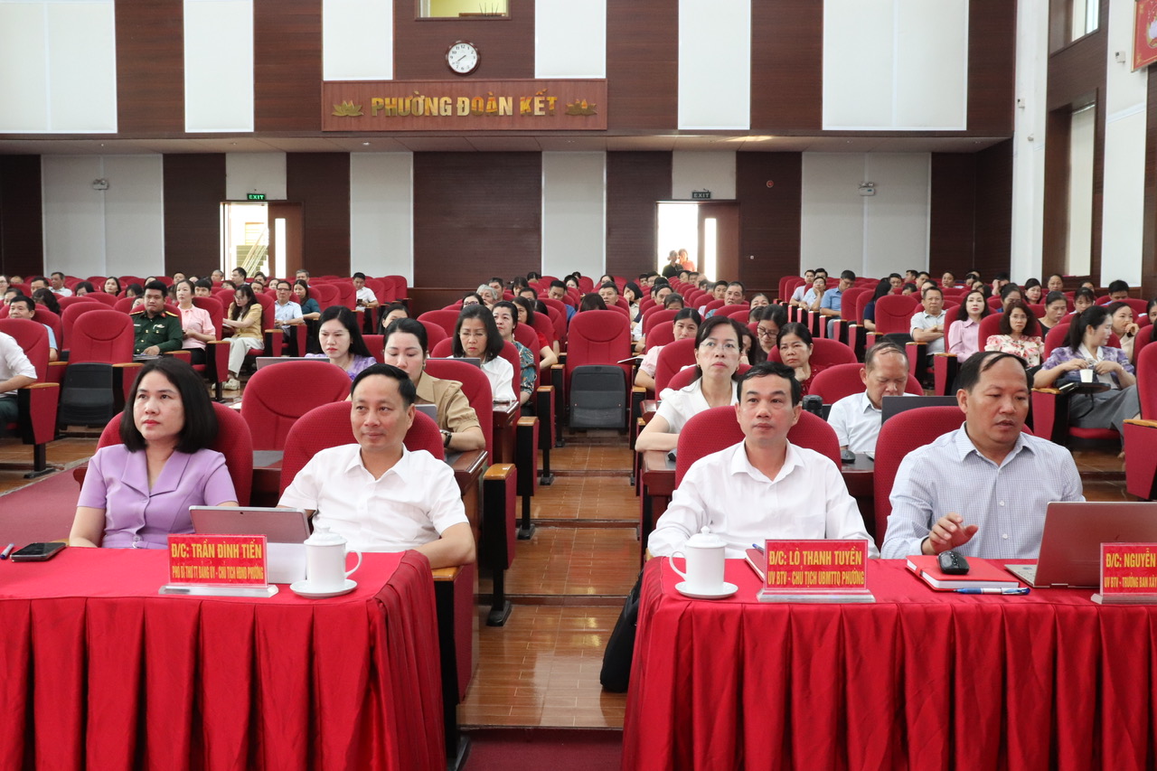 Tại điểm cầu phường Đoàn Kết, dự Hội nghị có đồng chí Đào Thị Lan Anh – Tỉnh ủy viên, Bí thư Đảng ủy phường; đồng chí Trần Đình Tiến – Phó Bí thư Thường trực Đảng ủy, Chủ tịch HĐND phường; đồng chí Hoàng Đại Thắng – Phó Bí thư Đảng ủy, Chủ tịch UBND phường; cùng các đồng chí trong Thường trực HĐND, UBND, Ủy ban MTTQ phường; lãnh đạo các cơ quan, đơn vị, tổ dân phố; cán bộ, công chức, viên chức trên địa bàn. Hội nghị được kết nối tại 3 điểm cầu với trên 420 đại biểu tham dự.