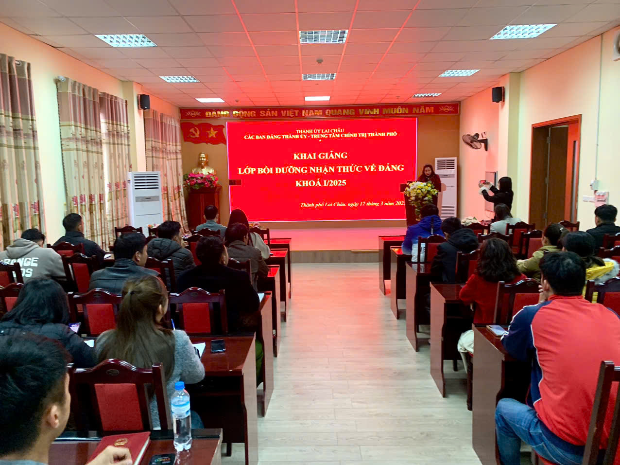 Sáng ngày 17/3, Trung tâm Chính trị thành phố phối hợp với các Ban Đảng Thành ủy tổ chức Lễ khai giảng lớp bồi dưỡng nhận thức về Đảng khóa I/2025 cho gần 40 quần chúng ưu tú của các Chi, Đảng bộ trực thuộc Đảng bộ thành phố.