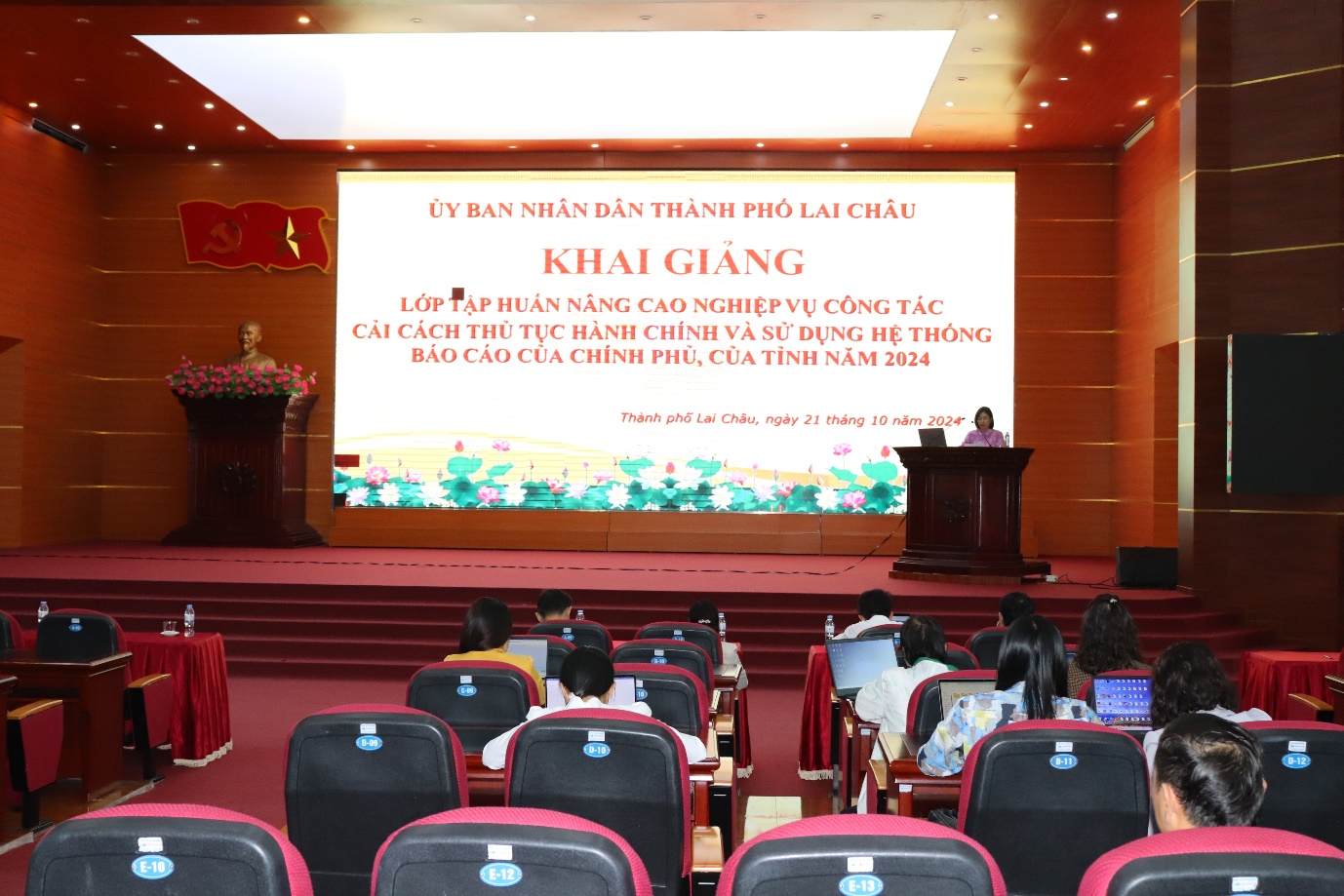 Sáng nay 21/10, UBND thành phố Lai Châu tổ chức Khai giảng lớp tập huấn nâng cao nghiệp vụ công tác cải cách thủ tục hành chính(TTHC) và sử dụng hệ thống báo cáo của Chính phủ, của Tỉnh. Tham dự có đồng chí Bùi Hữu Cam – Phó Chủ tịch UBND thành phố, lãnh đạo Phòng Nội vụ thành phố, Phòng nghiệp vụ - Văn phòng UBND tỉnh.