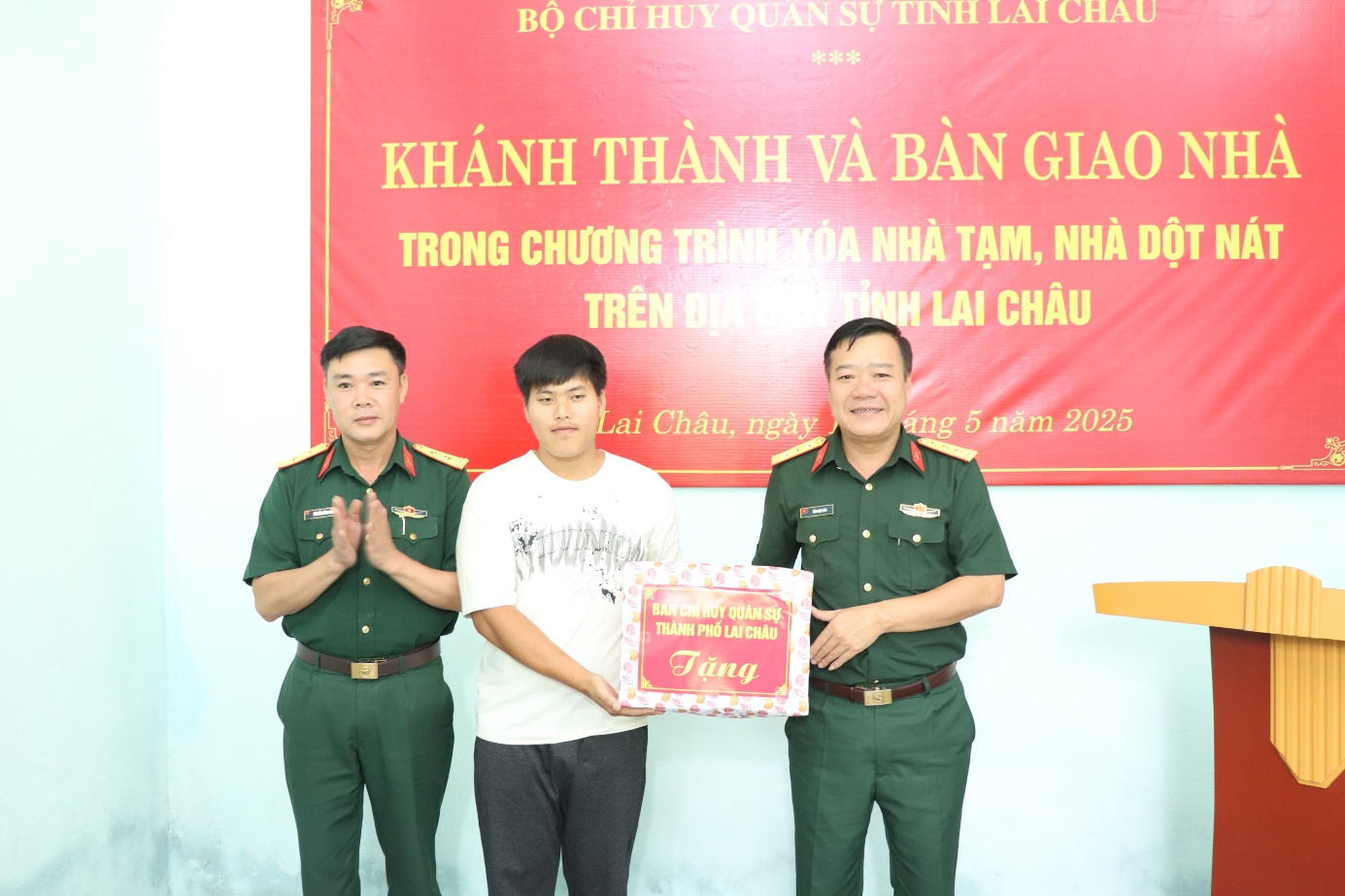 Chiều 15/5, Bộ Chỉ hủy Quân sự (CHQS) tỉnh Lai Châu tổ chức Lễ khánh thành và bàn giao nhà mới cho gia đình ông Giàng A Phử, Bản Suối Thầu, xã Sùng Phài, thành phố Lai Châu. Dự chương trình có đại diện lãnh đạo Bộ CHQS tỉnh; Phòng Nội vụ thành phố, Ban Chỉ huy Quân sự thành phố, Đảng uỷ xã Sùng Phài, đoàn thể bản và gia đình ông Giàng A Phử.