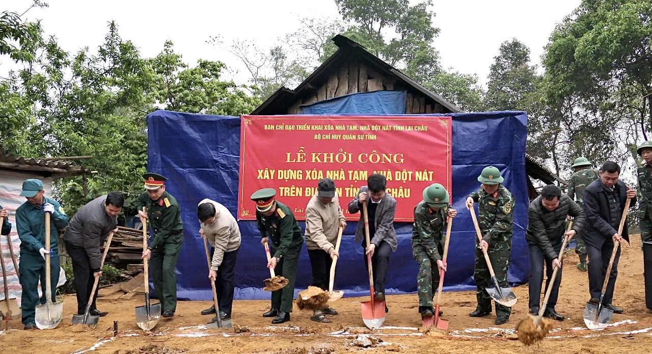 Ngày 1/4, Bộ Chỉ huy Quân sự (CHQS) tỉnh tổ chức khởi công xây dựng xóa nhà tạm, nhà dột nát cho gia đình ông Giàng A Phử, dân tộc Mông, bản Suối Thầu, xã Sùng Phài, thành phố Lai Châu.