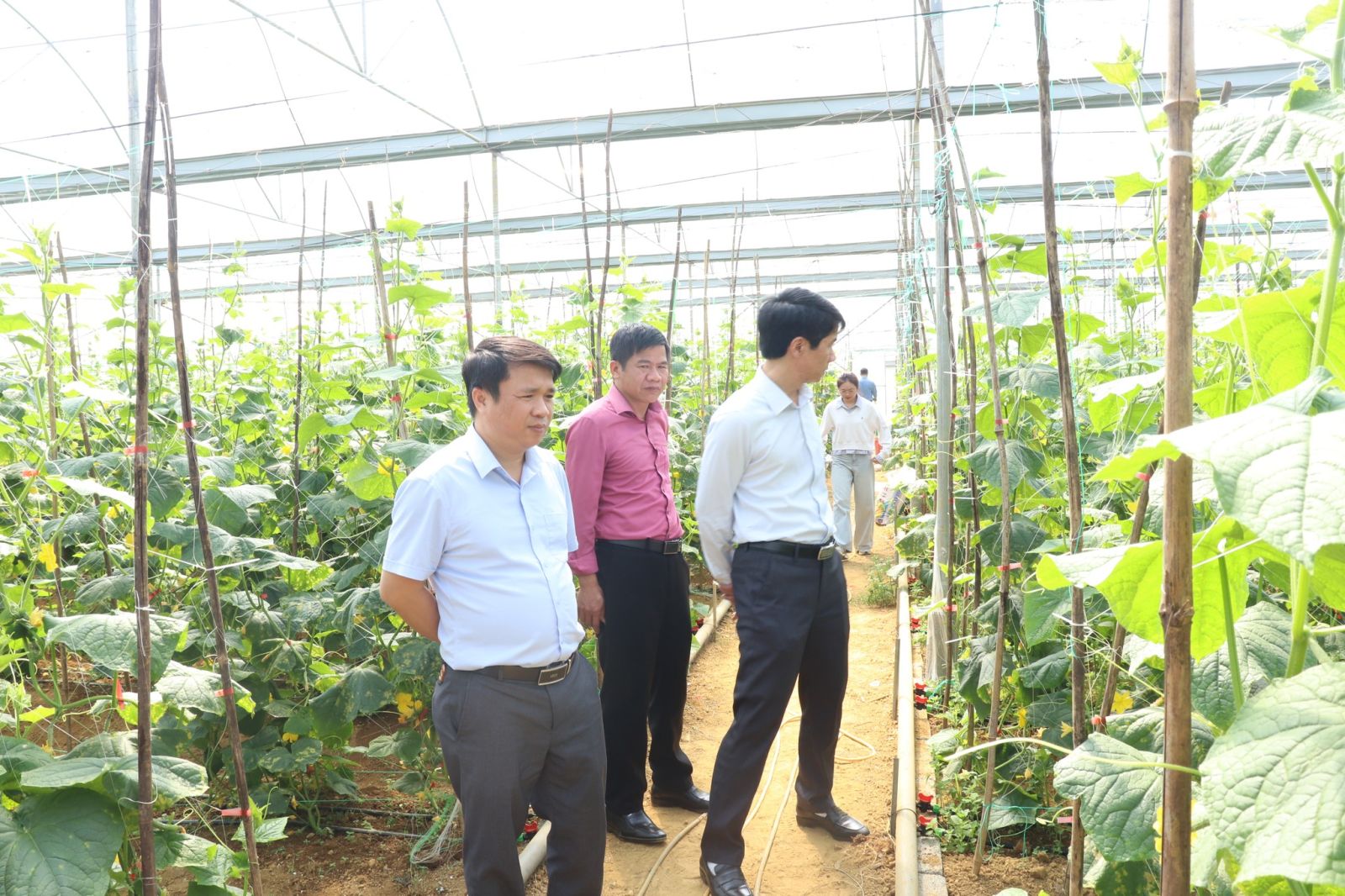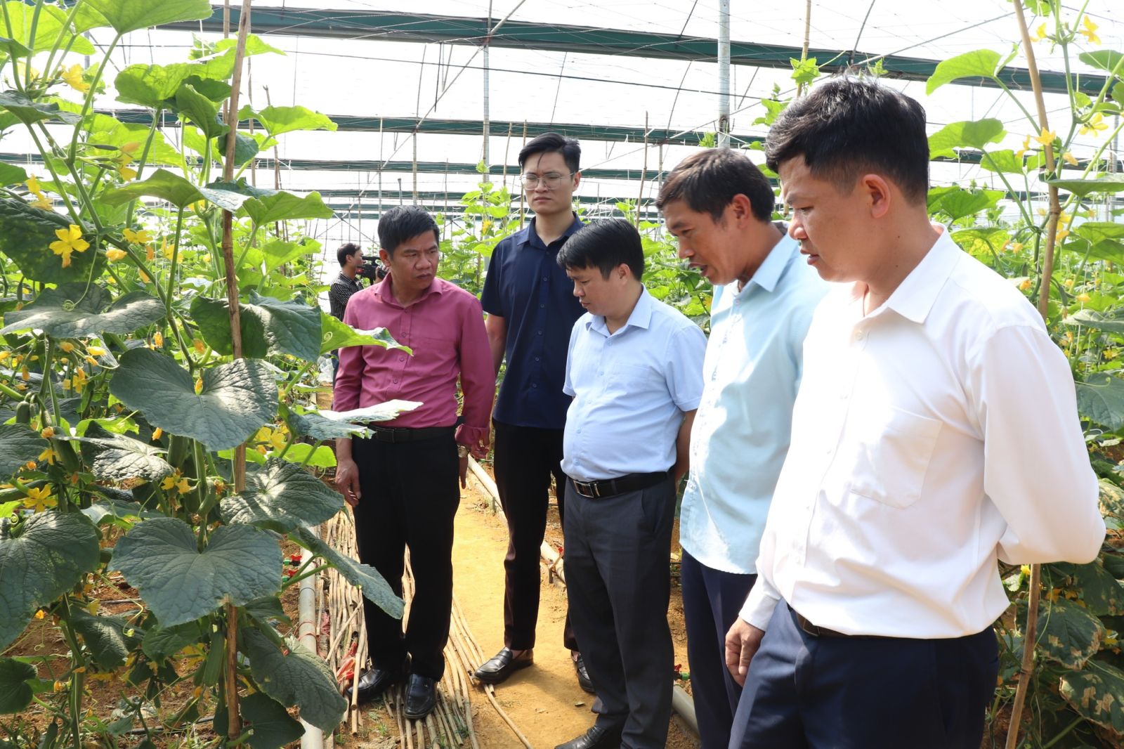 Đoàn thăm mô hình nhà lưới của HTX rau củ quả sạch Lai Châu.