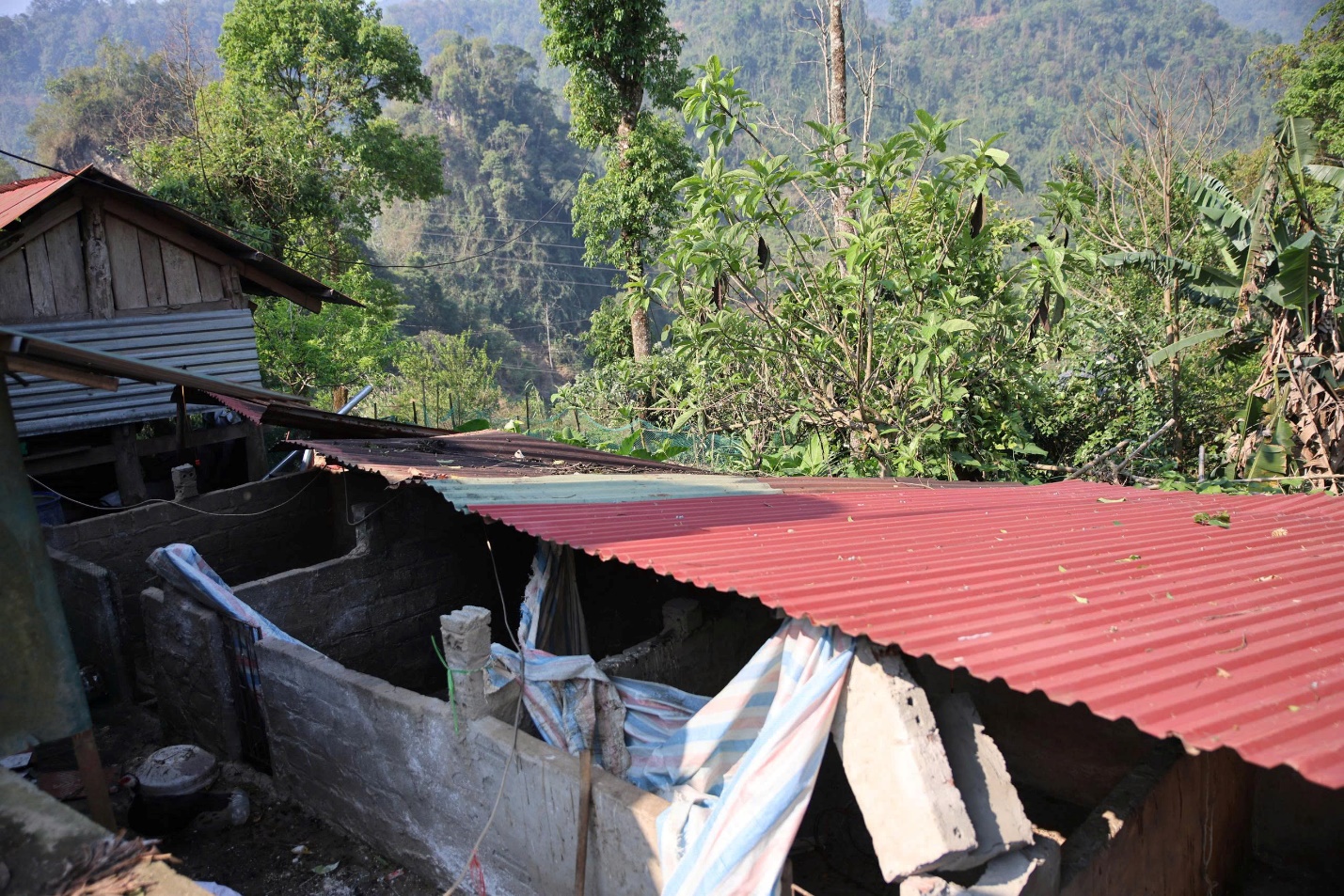 Giông lốc gây tốc mái hư hỏng một số công trình của người dân tại tổ dân phố Hồng Thu, Lản Nhì Thàng…