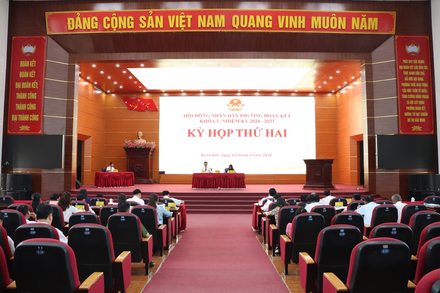 Chiều ngày 24/4, HĐND phường Đoàn Kết tổ chức Kỳ họp thứ hai, khóa V, nhiệm kỳ 2026–2031. Dự kỳ họp có đồng chí Nguyễn Xuân Thức – Phó trưởng Ban Kinh tế - Ngân sách HĐND tỉnh, tổ trưởng tổ đại biểu số 1 HĐND tỉnh, các đại biểu HĐND tỉnh ứng cử trên địa bàn; Đồng chí Hoàng Đại Thắng – Phó Bí thư, Chủ tịch UBND, lãnh đạo Ủy ban MTTQ Việt Nam phường; cùng các vị đại biểu HĐND phường khóa V. Đồng chí Trần Đình Tiến – Phó Bí thư Thường trực, Chủ tịch HĐND phường, Tạ Thị Bích Ngọc – Phó Chủ tịch HĐND phường chủ tọa Kỳ họp.