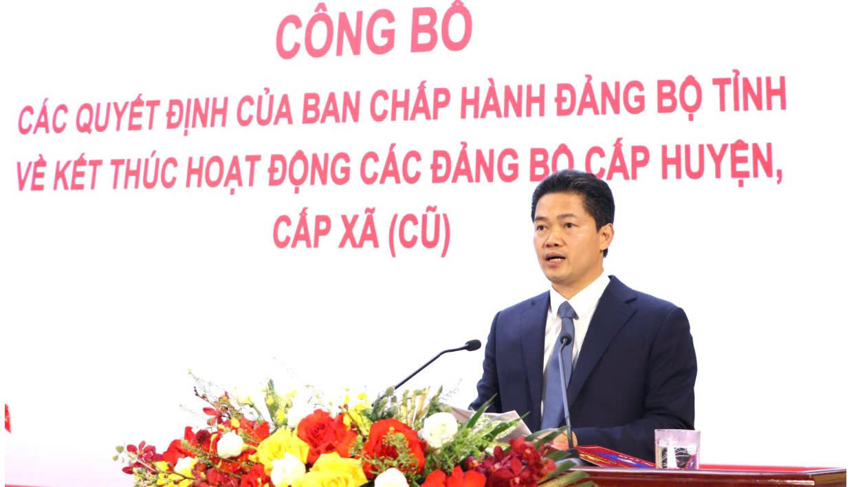 Cũng tại buổi Lễ, đồng chí Vũ Mạnh Hà - Ủy viên Dự khuyết Ban Chấp hành Trung ương Đảng, Phó Bí thư Thường trực Tỉnh ủy công bố Quyết định của Ban Chấp hành Đảng bộ tỉnh Lai Châu về việc kết thúc hoạt động các Đảng bộ cấp huyện, cấp xã cũ; Quyết định của Ban Chấp hành Đảng bộ tỉnh Lai Châu về thành lập Đảng bộ các xã, phường; Quyết định chỉ định nhân sự Ban Chấp hành, Ban Thường vụ, Bí thư, Phó Bí thư; Quyết định chỉ định Ủy ban Kiểm tra, Chủ nhiệm Ủy ban Kiểm tra; công bố các quyết định của Ủy ban Mặt trận Tổ quốc Việt Nam tỉnh thành lập Mặt trận Tổ quốc Việt Nam cấp xã tỉnh Lai Châu.