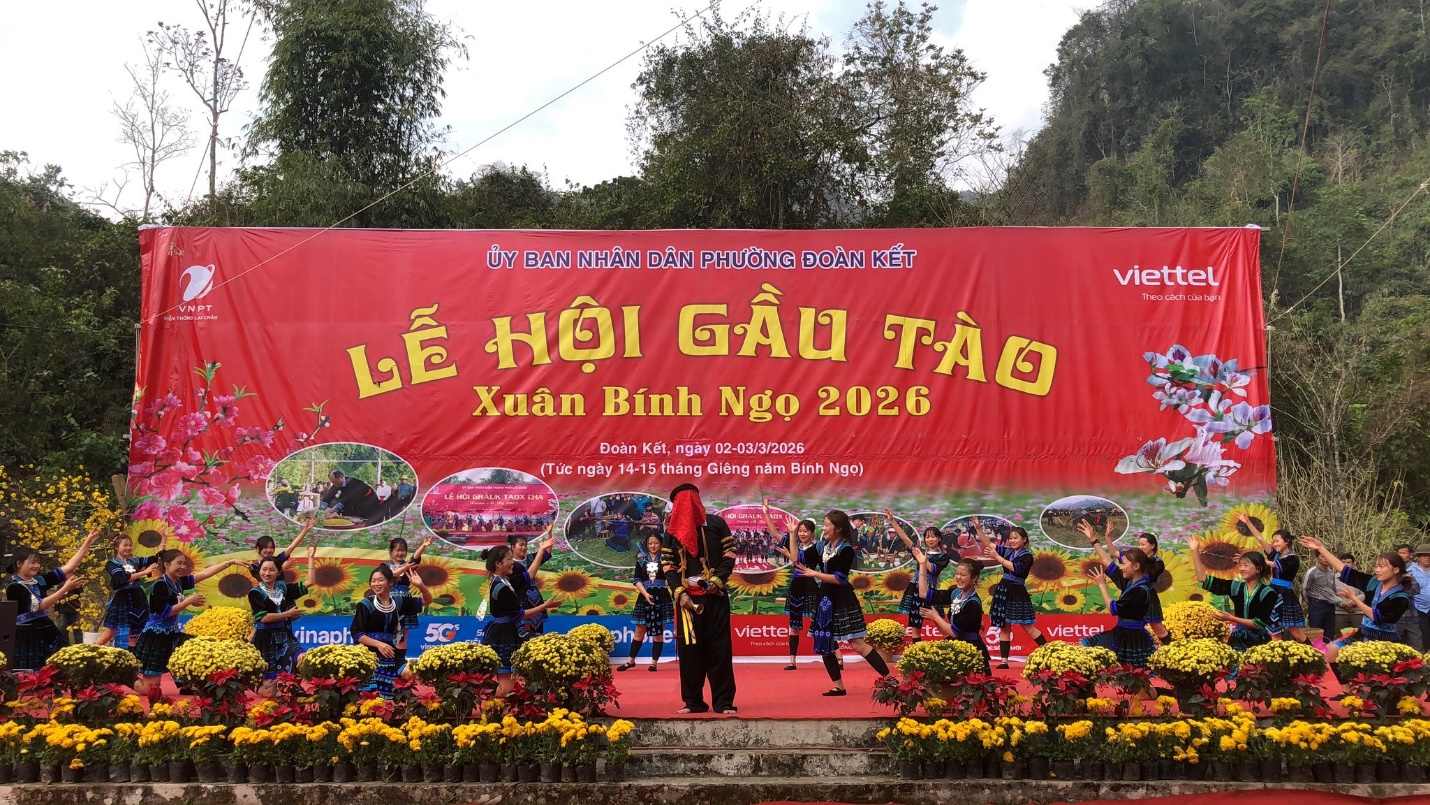 Sáng ngày 02/3, tại tổ dân phố Gia Khâu 1, UBND phường Đoàn Kết long trọng tổ chức Lễ hội Gầu Tào Xuân Bính Ngọ năm 2026. Lễ hội thu hút đông đảo cán bộ, Nhân dân và du khách tham dự trong không khí vui tươi, rộn ràng sắc Xuân. Dự lễ hội có các đồng chí: Trần Đình Tiến – Phó Bí thư Thường trực Đảng ủy, phụ trách Đảng bộ phường; Hoàng Đại Thắng – Phó Bí thư Đảng ủy, Chủ tịch UBND phường; cùng các đồng chí lãnh đạo Đảng ủy, HĐND, UBND, Ủy ban MTTQ Việt Nam phường, đại diện các tổ dân phố và đông đảo Nhân dân.