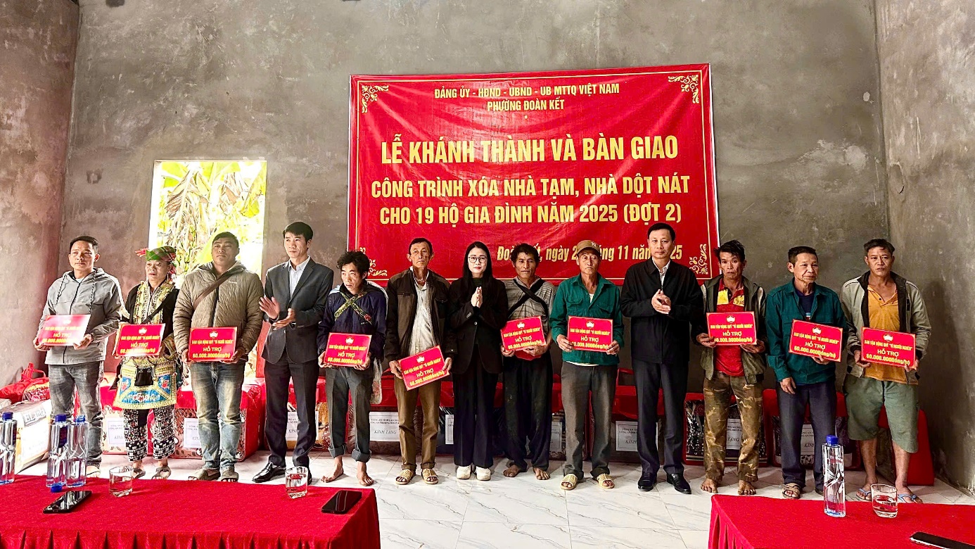 Thực hiện xoá nhà tạm, nhà dột nát đợt 2, năm 2025, trên địa bàn phường Đoàn Kết có 19 hộ được phê duyệt, kinh phí hỗ trợ 1.140 triệu đồng. Đến nay có 19/19 hộ đã triển khai xây dựng nhà ở cơ bản đảm bảo kế hoạch đề ra.