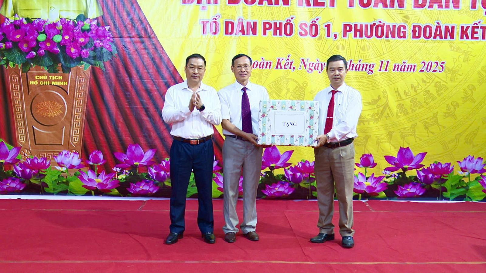 Nhân dịp này, Đồng chí Tống Thanh Bình – Uỷ viên BTV Tỉnh uỷ, Phó Chủ tịch Thường trực Uỷ ban MTTQ Việt Nam tỉnh, Bí thư Đảng uỷ, Chủ tịch HĐND phường đã tặng quà cho tổ dân phố số 1. UBND, MTTQ phường, Tổ dân phố số 1 đã khen thưởng cho các tập thể, cá nhân trên địa bàn phường Đoàn Kết có thành tích tiêu biểu trong thực hiện Cuộc vận động “Toàn dân đoàn kết xây dựng nông thôn mới, đô thị văn minh năm 2025”; “Tổ dân phố văn hoá năm 2025”; biểu dương, tặng quà hộ gia đình tiêu biểu trong thực hiện các cuộc vận động năm 2025. Phát động hưởng ứng các hoạt động thi đua chào mừng Đại hội Đảng toàn quốc lần thứ XIV, nhiệm kỳ 2025-2030; Đại hội đại biểu MTTQ Việt Nam tỉnh Lai Châu lần thứ XIV, nhiệm kỳ 2026 - 2031”; Đại hội đại biểu toàn quốc MTTQ Việt Nam lần thứ XI, nhiệm kỳ 2026 – 2031 và Ký giao ước thi đua.