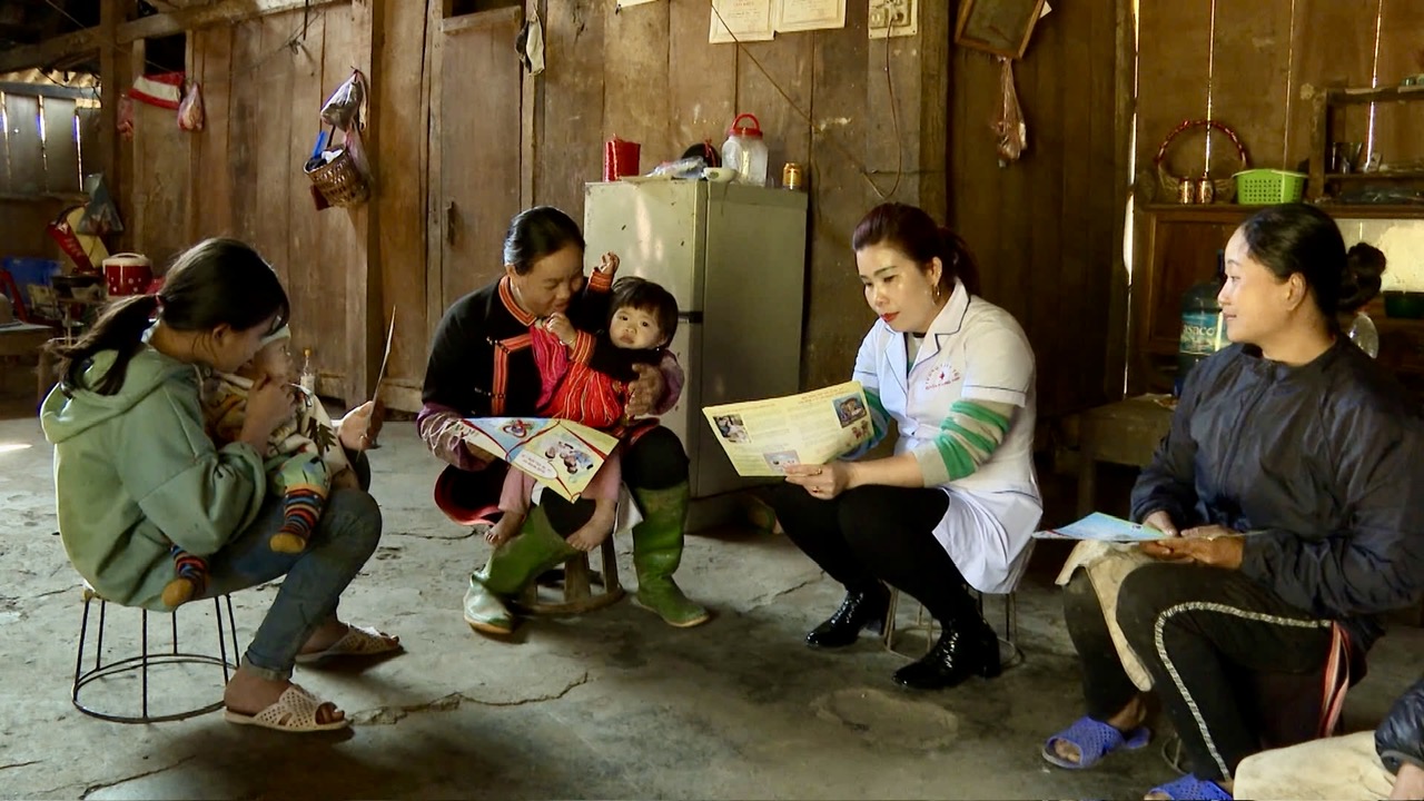 Cán bộ y tế xã San Thàng tuyên truyền Nhân dân về công tác phòng, chống dịch cúm mùa.