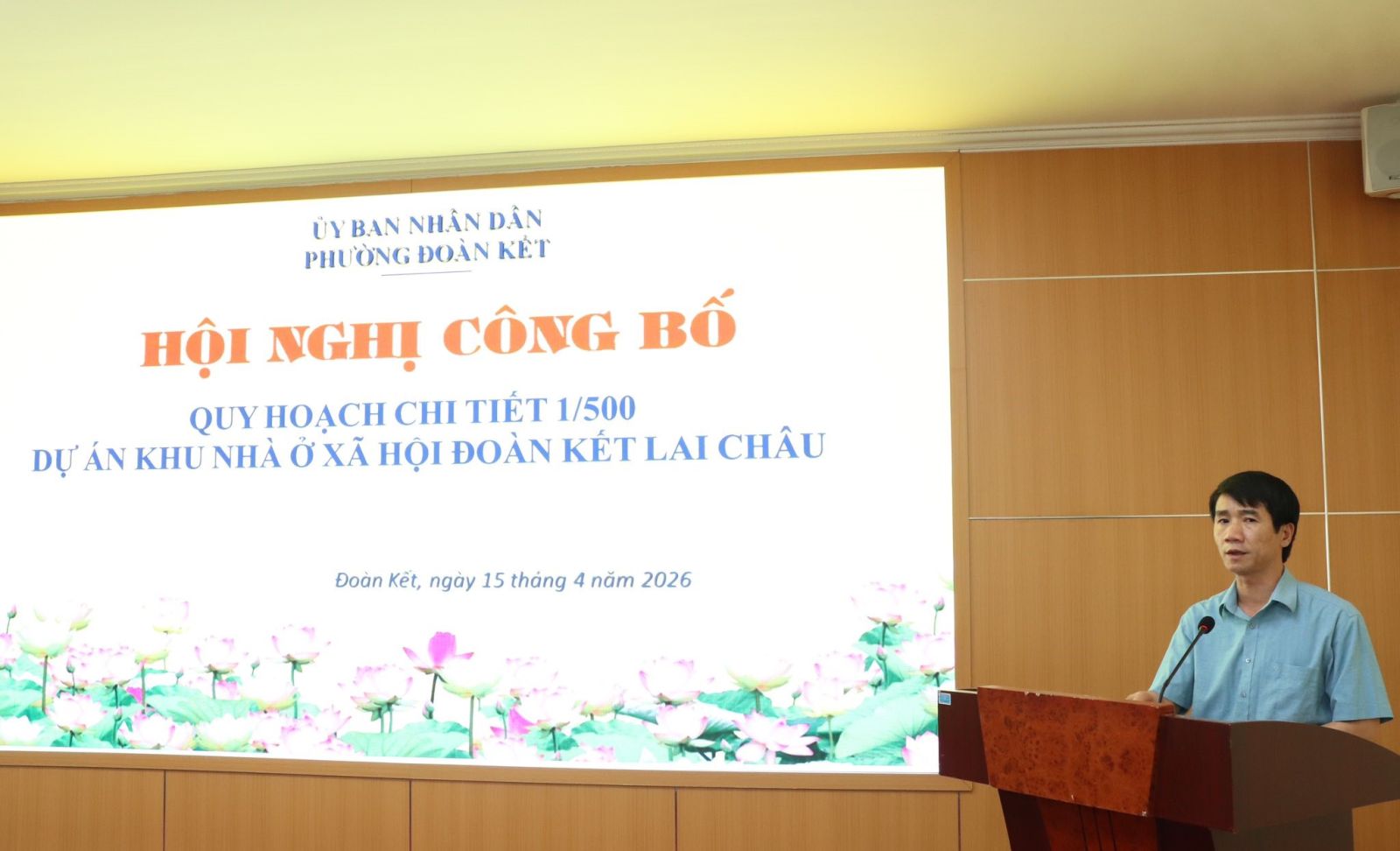 Chiều 15/4/2026, UBND phường Đoàn Kết tổ chức công bố phê duyệt Quy hoạch chi tiết tỷ lệ 1/500 dự án Khu nhà ở xã hội Đoàn Kết Lai Châu. Dự buổi công bố có đồng chí Đặng Việt Hưng – UVBTVĐU, Phó Chủ tịch UBND phường; đại diện Trung tâm Phát triển quỹ đất tỉnh, chủ đầu tư, cùng bí thư chi bộ, tổ trưởng tổ dân phố và nhân dân trong khu vực dự án.