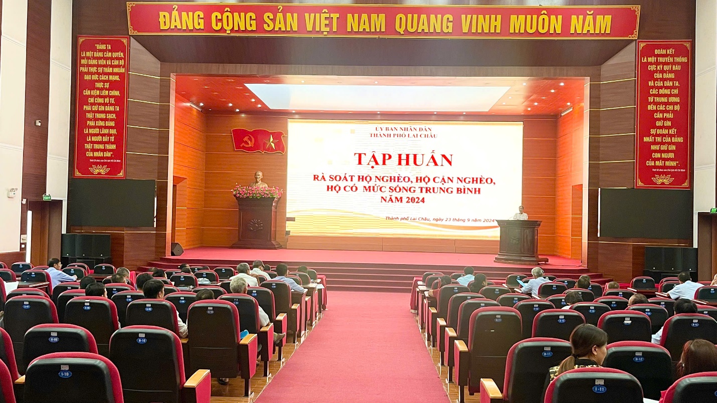 Sáng nay 23/9, UBND thành phố Lai Châu tổ chức hội nghị tập huấn công tác rà soát hộ nghèo, hộ cận nghèo, xác định hộ có mức sống trung bình năm 2024. Dự tập huấn có thành viên Ban chỉ đạo rà soát hộ nghèo, hộ cận nghèo, hộ có mức sống trung bình trên địa bàn thành phố giai đoạn 2022-2025; lãnh đạo UBND xã, phường, tổ dân phố, bản trên địa bàn thành phố.