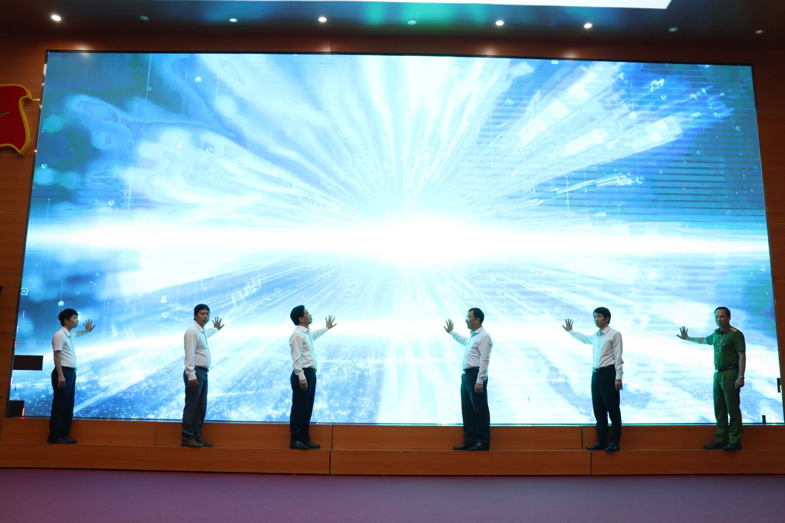 Lãnh đạo thành phố, xã, phường nhấn nút triển khai thi hành luật căn cước và thu nhận hồ sơ căn cước cho công dân trên địa bàn.