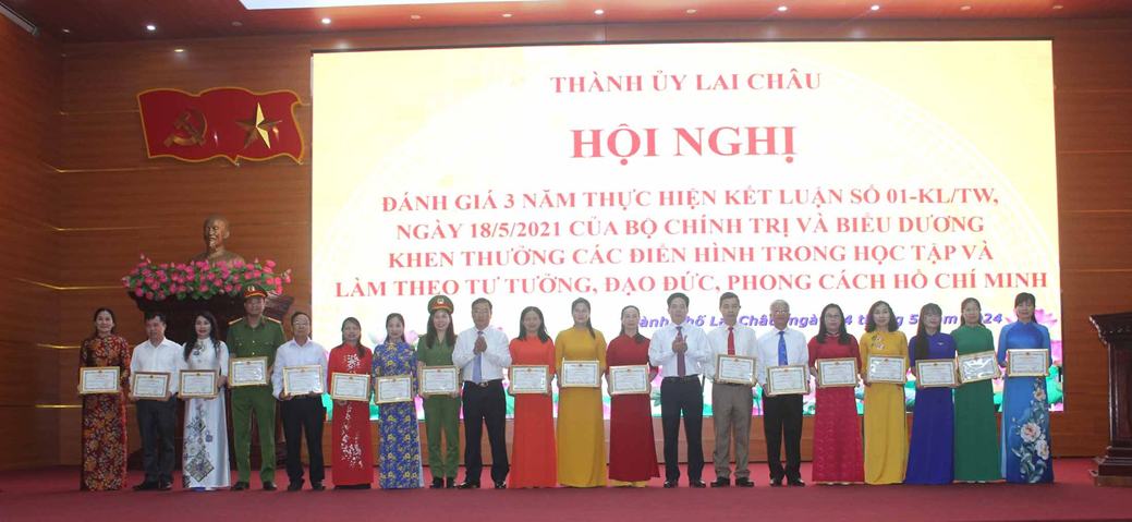 Nhân dịp này, Ủy ban nhân dân thành phố Lai Châu đã tặng Giấy khen cho 18 tập thể, 27 cá nhân và 6 hộ gia đình tiêu biểu, điển hình trong học tập và làm theo tư tưởng, đạo đức, phong cách Hồ Chí Minh giai đoạn 2021- 2024.