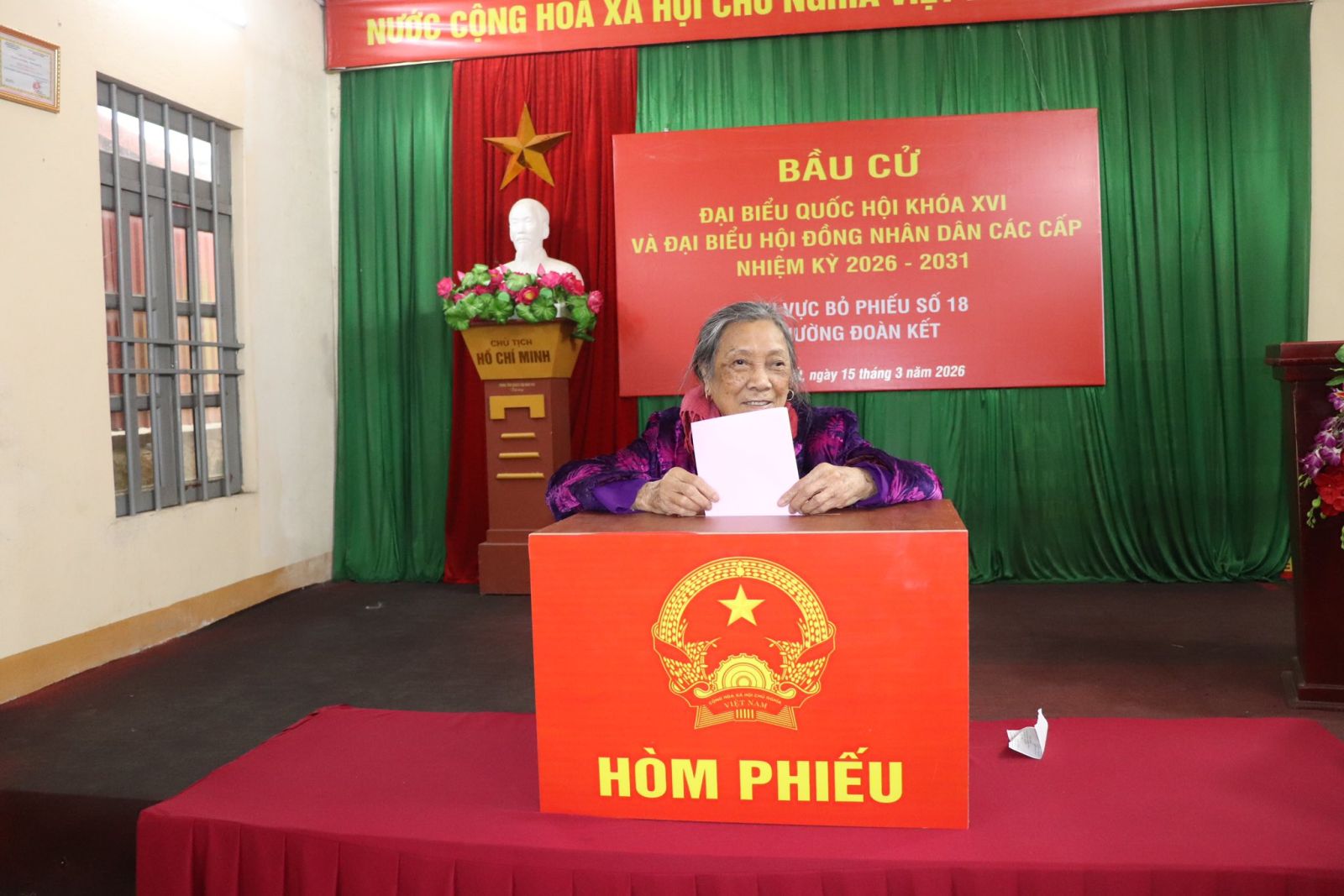 Ngay sau lễ khai mạc, đông đảo cử tri đã tiến hành bỏ phiếu trong không khí trật tự, dân chủ và đầy trách nhiệm. Nhiều cụ cao niên, cán bộ hưu trí và cử tri cao tuổi có mặt từ rất sớm để thực hiện quyền công dân của mình, góp phần lan tỏa tinh thần trách nhiệm và niềm tin vào ngày hội lớn của toàn dân.