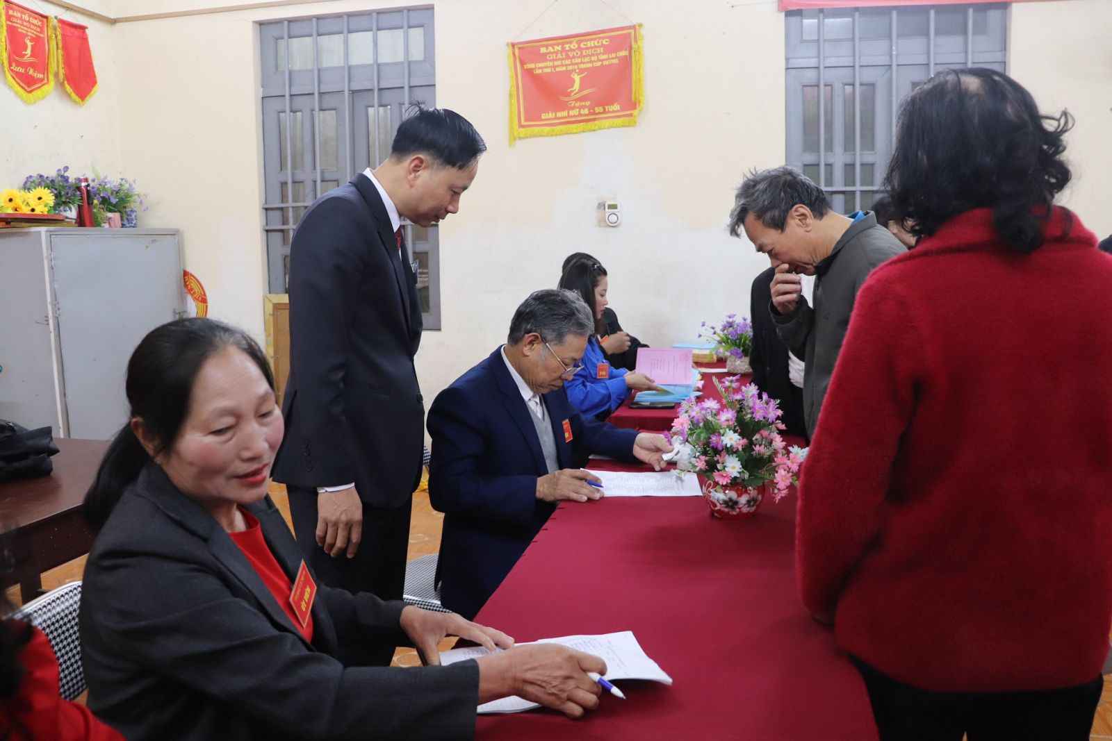 Đồng chí Tống Thanh Hải – UVBTVTU, Phó Chủ tịch Thường trực UBND tỉnh, Hoàng Đại Thắng – Phó Bí thư, Chủ tịch UBND phường dự ngày bầu cử tại tổ dân phố số 8