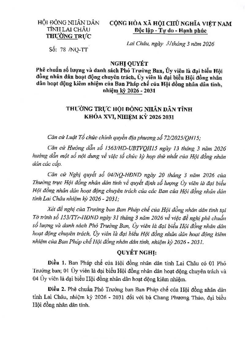 | Số hiệu | 78/NQ-TT | Cơ quan ban hành | HĐND tỉnh lai Châu |