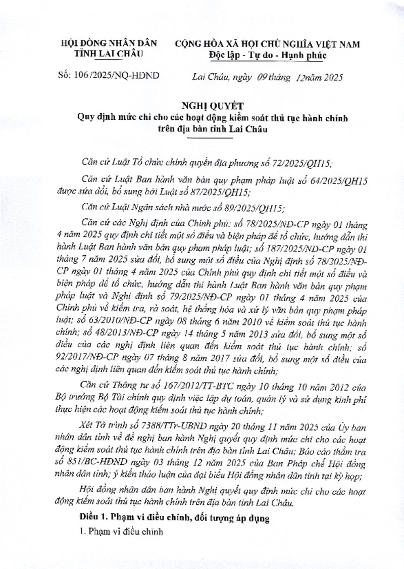 | Số hiệu | 106/2025/NQ-HĐND | Cơ quan ban hành | HĐND tỉnh lai Châu |