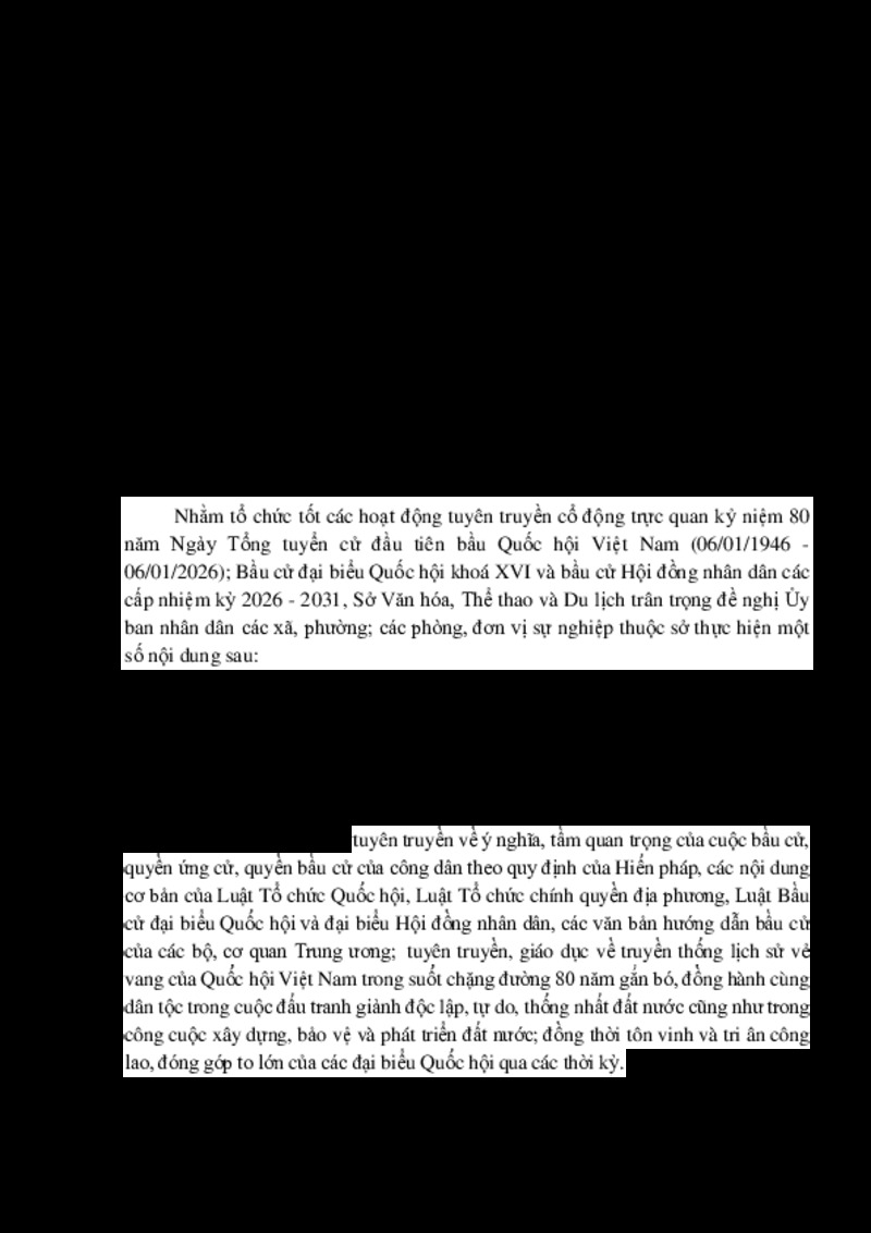 | Tiêu đề văn bản | V/v tuyên truyền cổ động trực quan kỷ niệm 80 năm Ngày Tổng tuyển cử đầu tiên bầu Quốc hội Việt Nam; Bầu cử đại biểu Quốc hội khoá XVI và bầu cử HĐND các cấp | ||