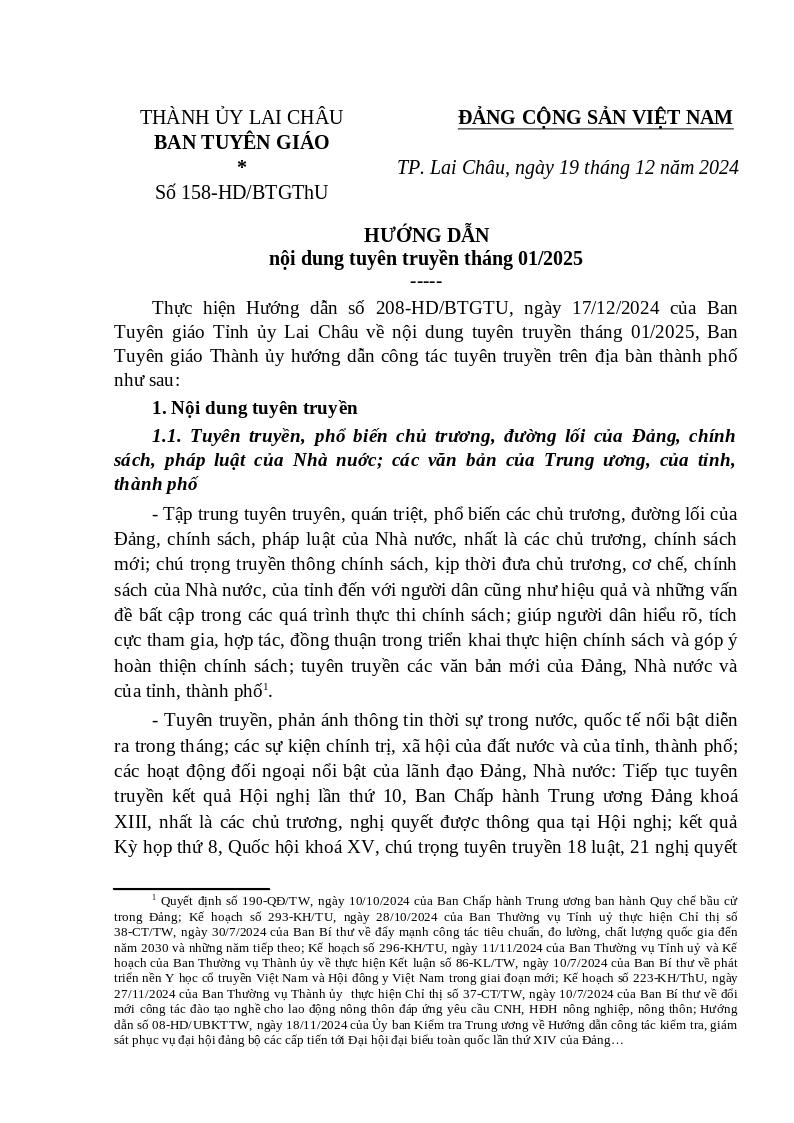 | Tiêu đề văn bản | Hướng dẫn tuyên truyền tháng 01/2025 | ||