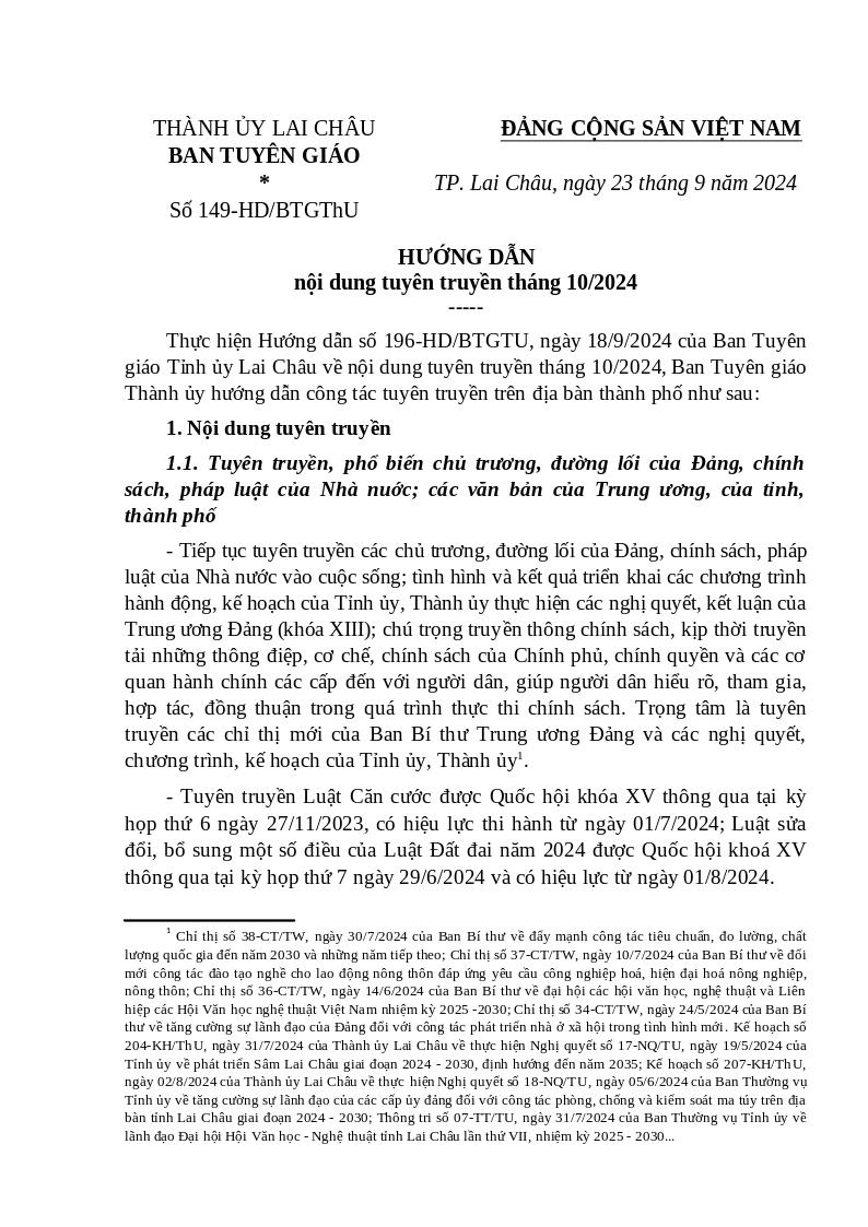 | Tiêu đề văn bản | Hướng dẫn tuyên truyền tháng 10 | ||